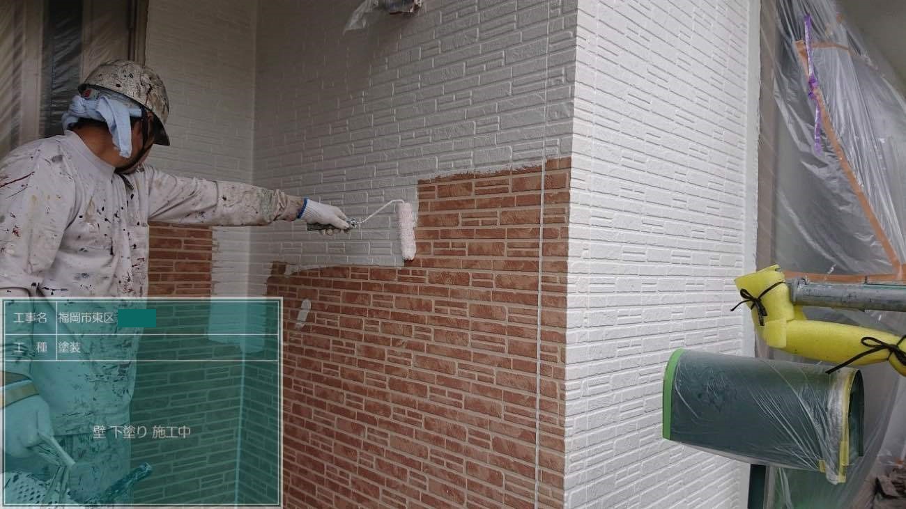 シーリングの施工が完了したら、外壁塗装をはじめます。これは下塗りといい