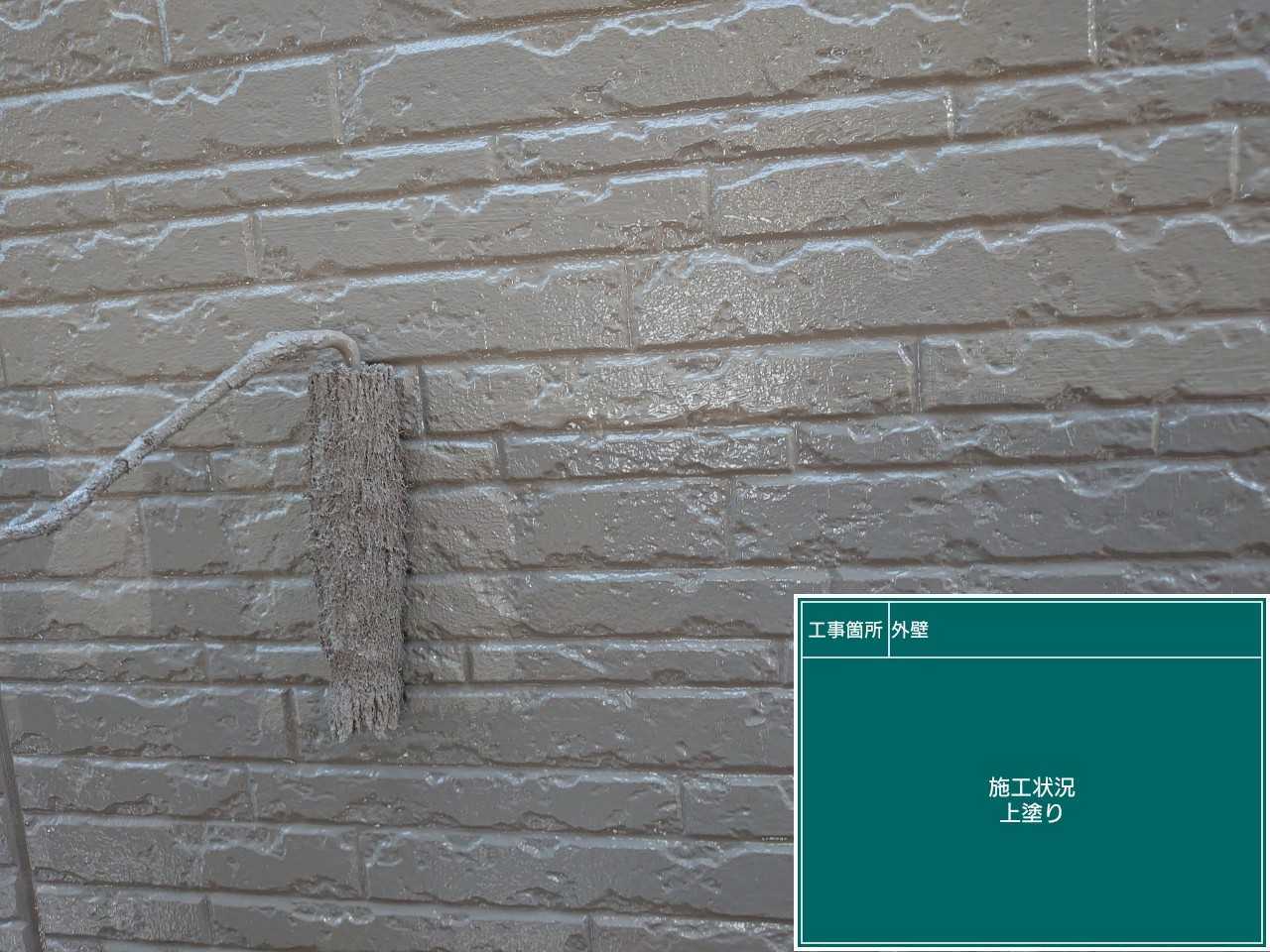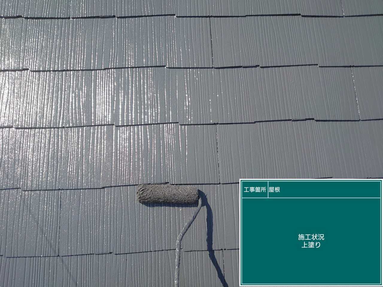最後に上塗り作業です。上塗りは先程の中塗り作業にさらに膜を厚くし紫外線から下地を守るために厚みをだします。