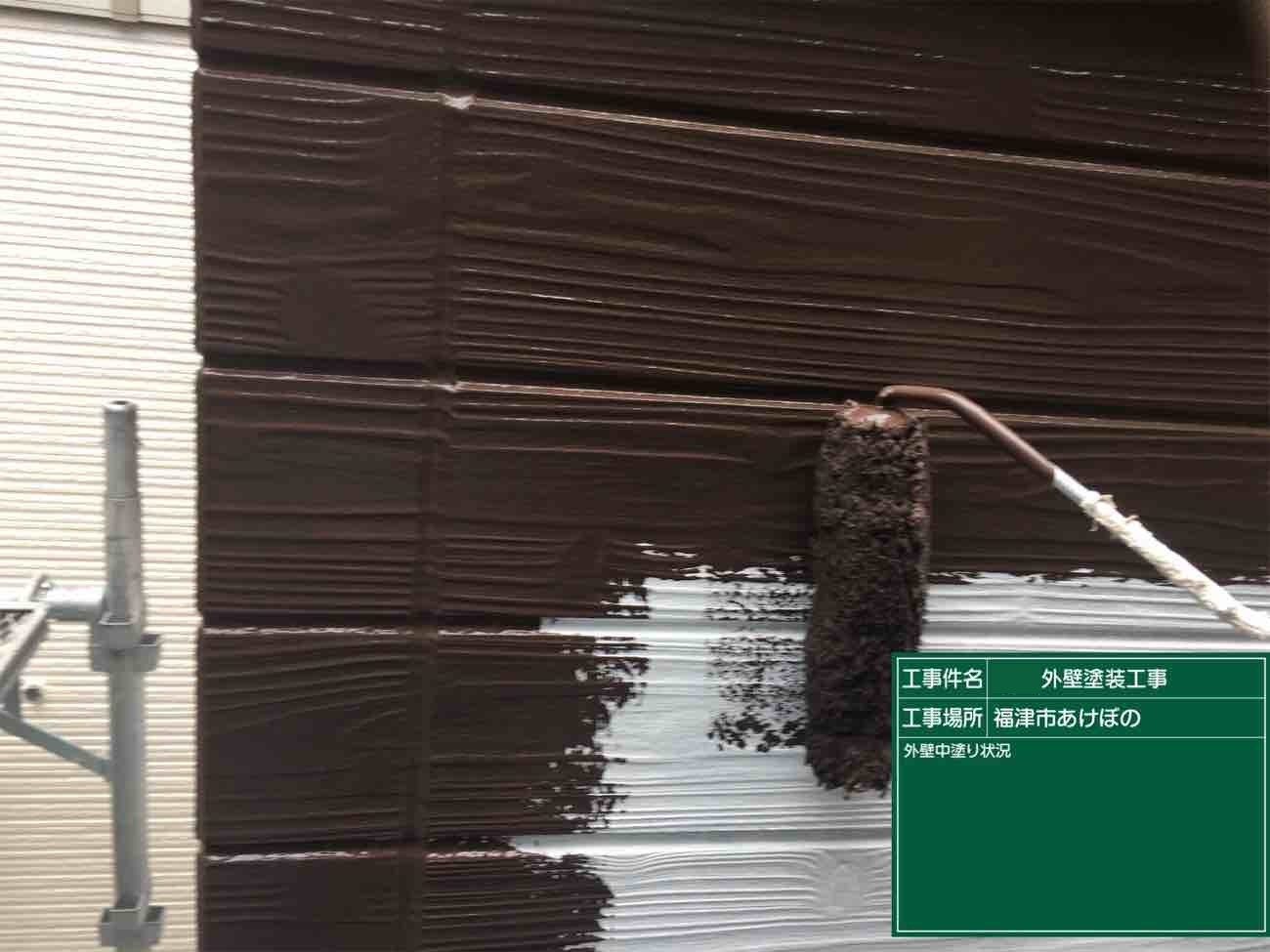 外壁1か所目の塗装です。今回2色の塗料を使用しているため、二か所ご紹介していきます。