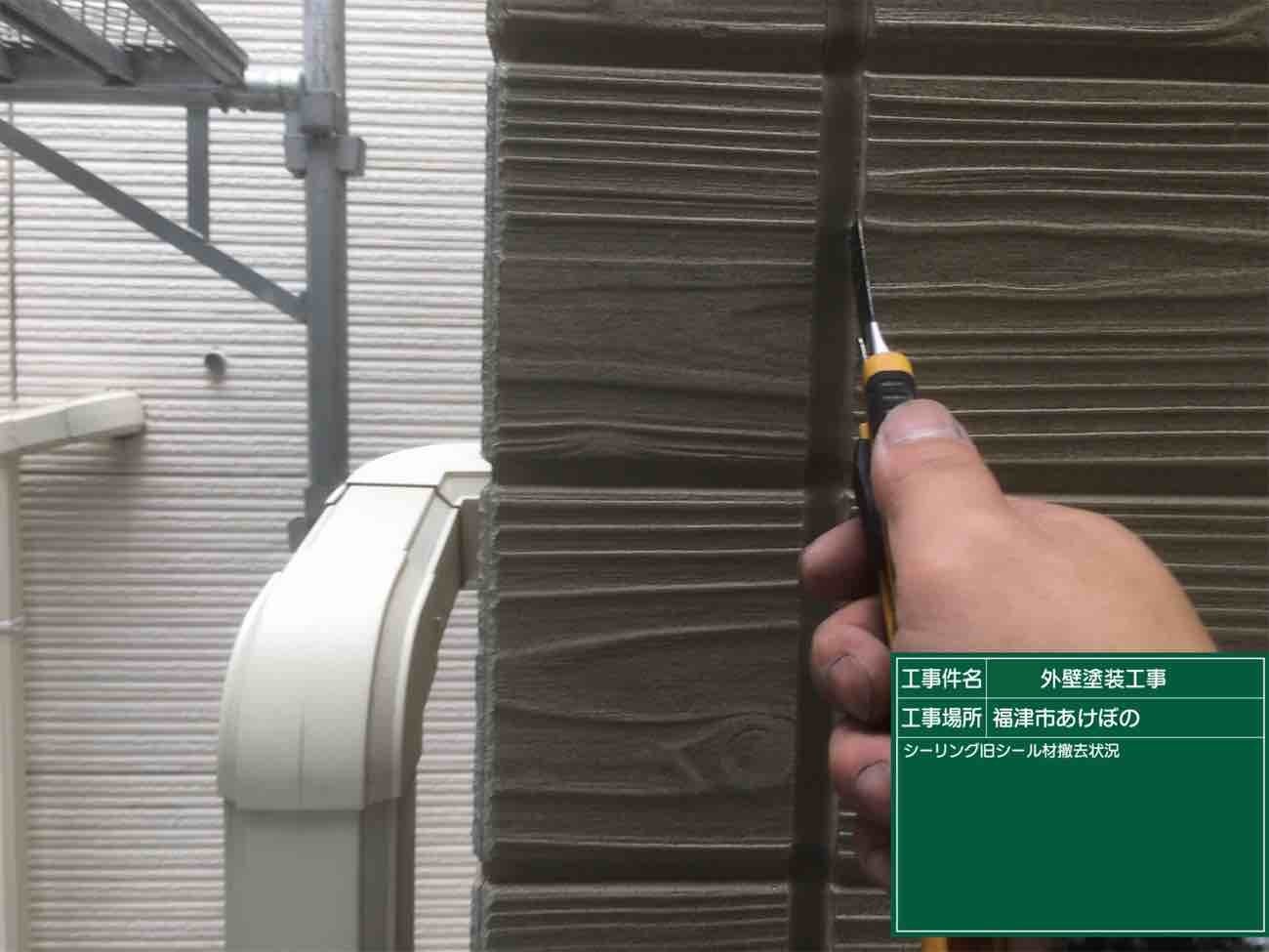 目地の古いシーリングを撤去していきます。今回はカッターを使用し作業をしていきます。