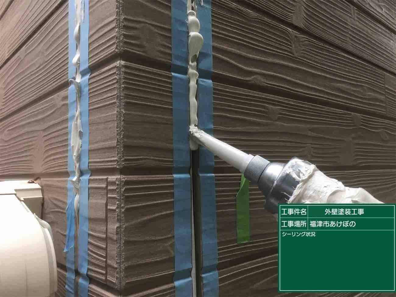 いよいよシーリング材を目地に沿って充填していきます。丁寧に綺麗に充填していきます。