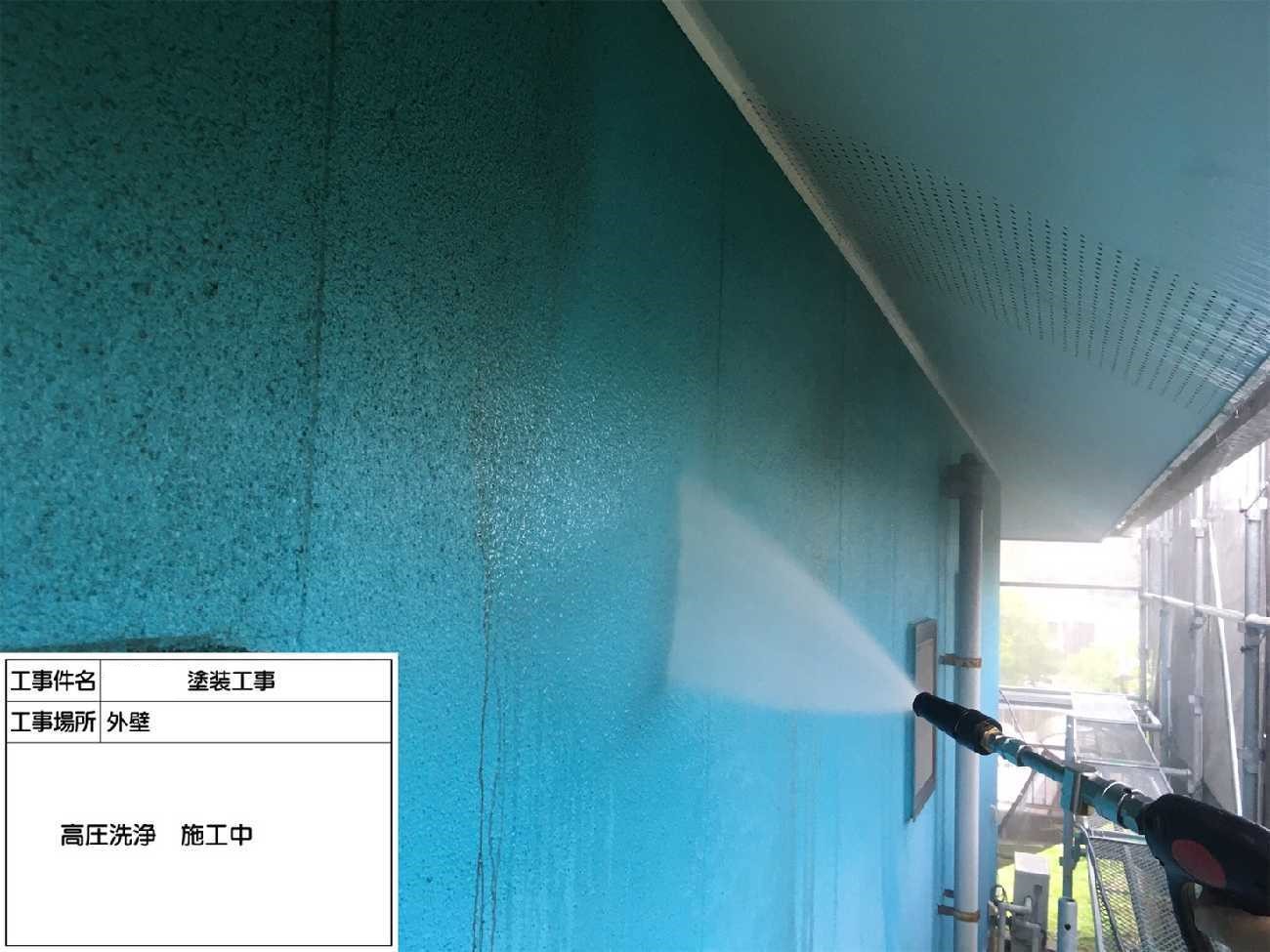 まず、外壁の汚れを高圧洗浄で落としていきます。