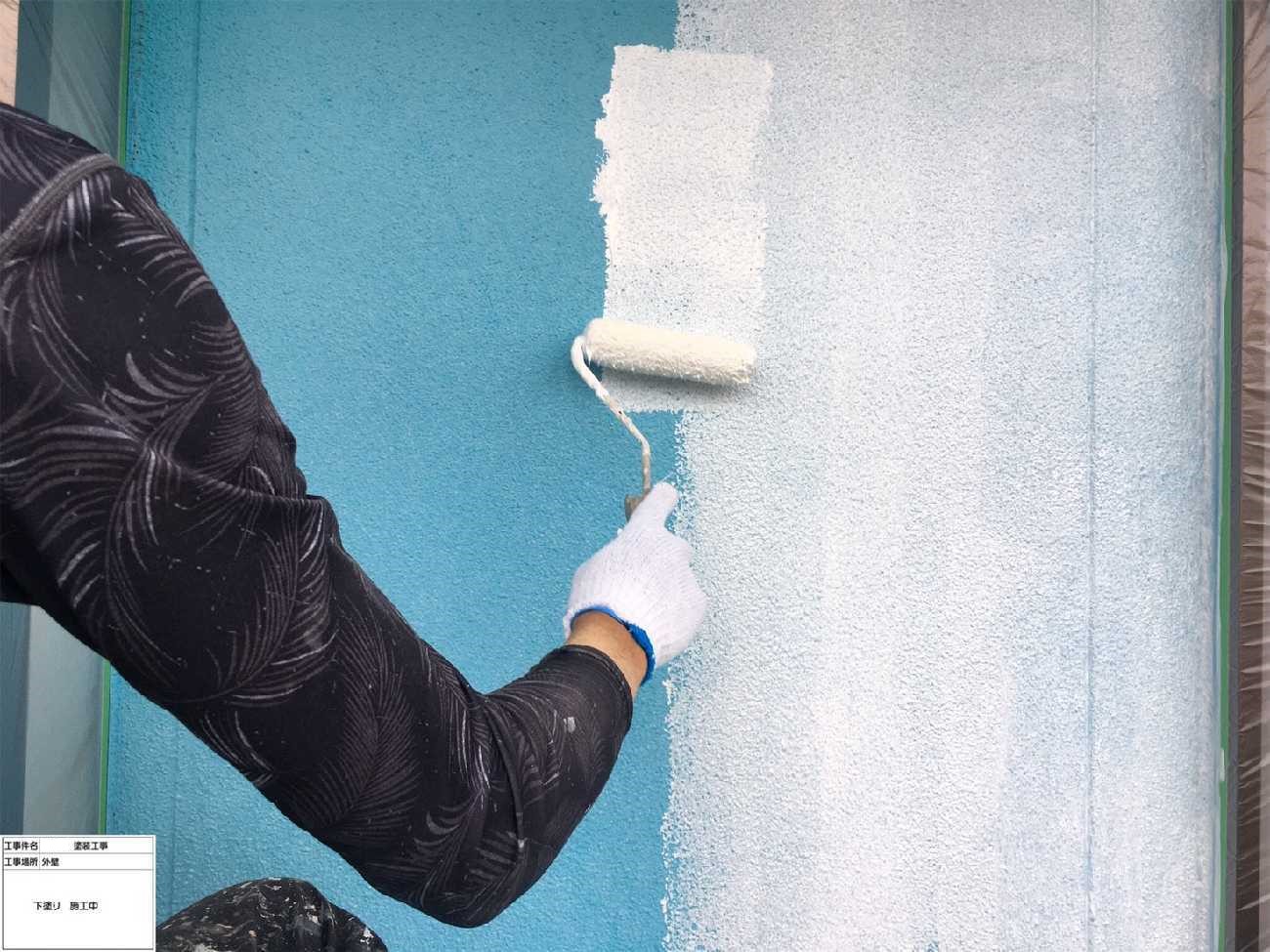 外壁は下塗りが重要となりますので、 丁寧に塗っていきます。