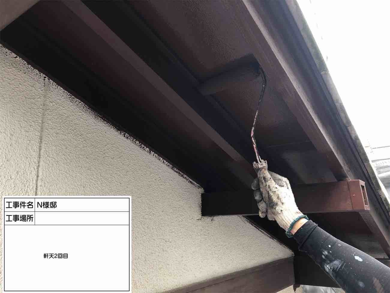 外壁塗装の仕上げにあたる上塗り作業です。 美観と耐候性などに関わる大切な工程です。