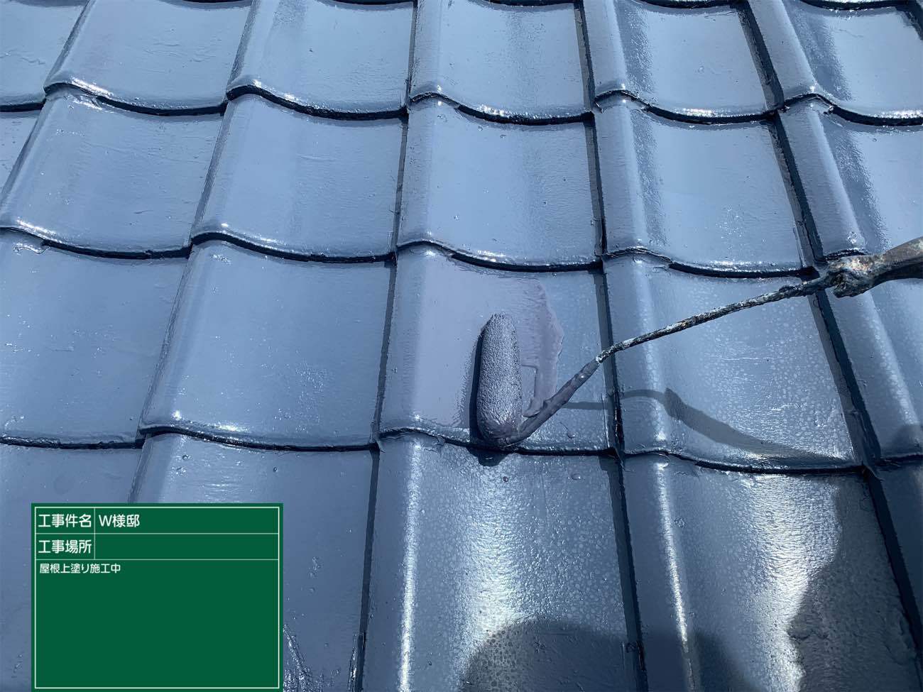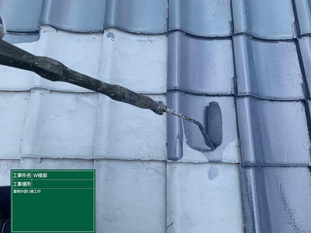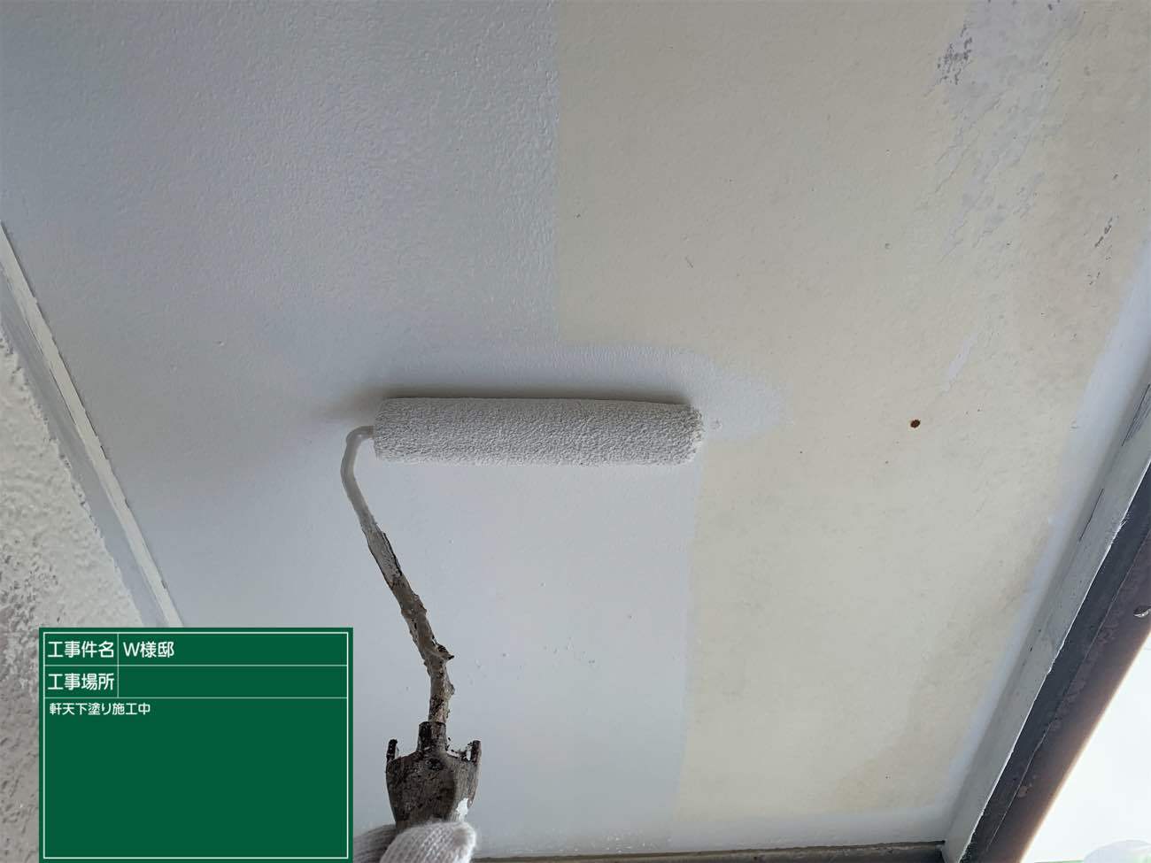 外壁、屋根が3回塗りだったのに対し今回は上塗り2回で完了です。まずは1回目