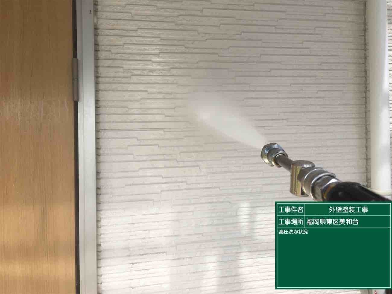 高圧洗浄を行います。外壁に付着した汚れを洗浄していきます。