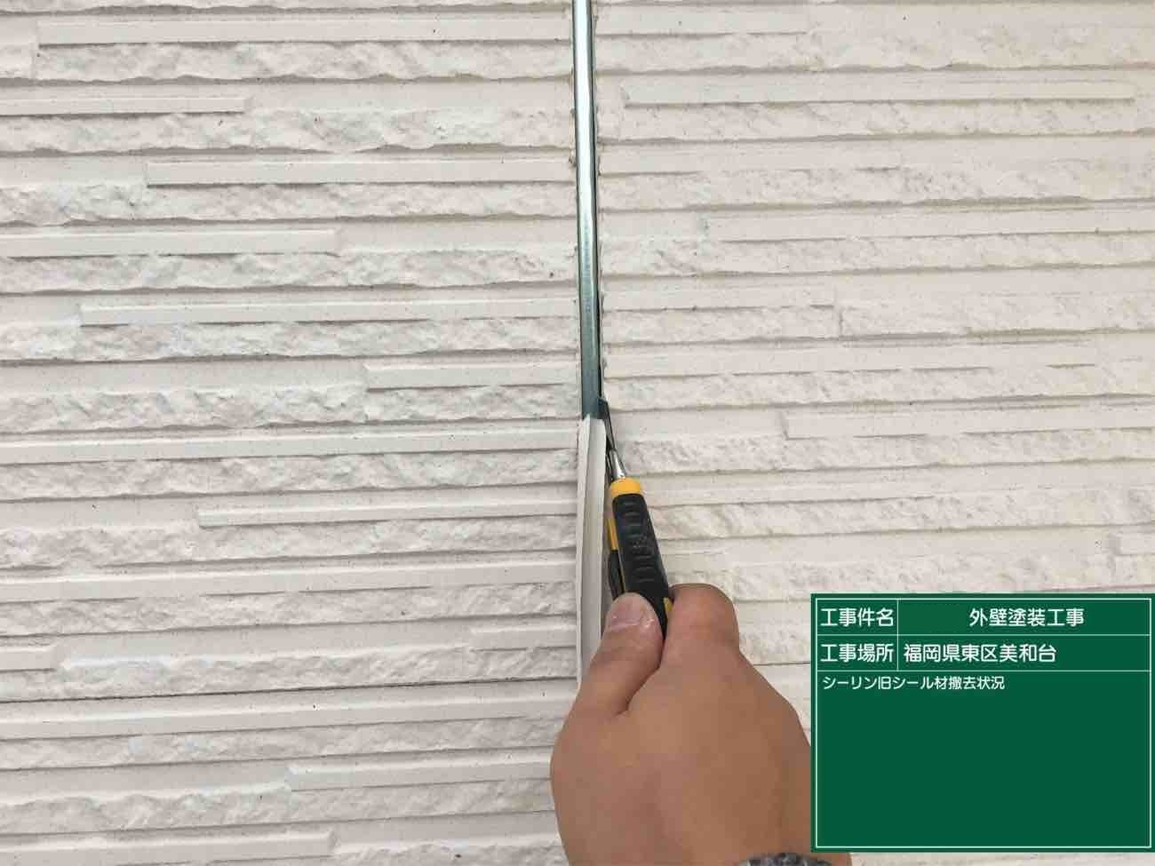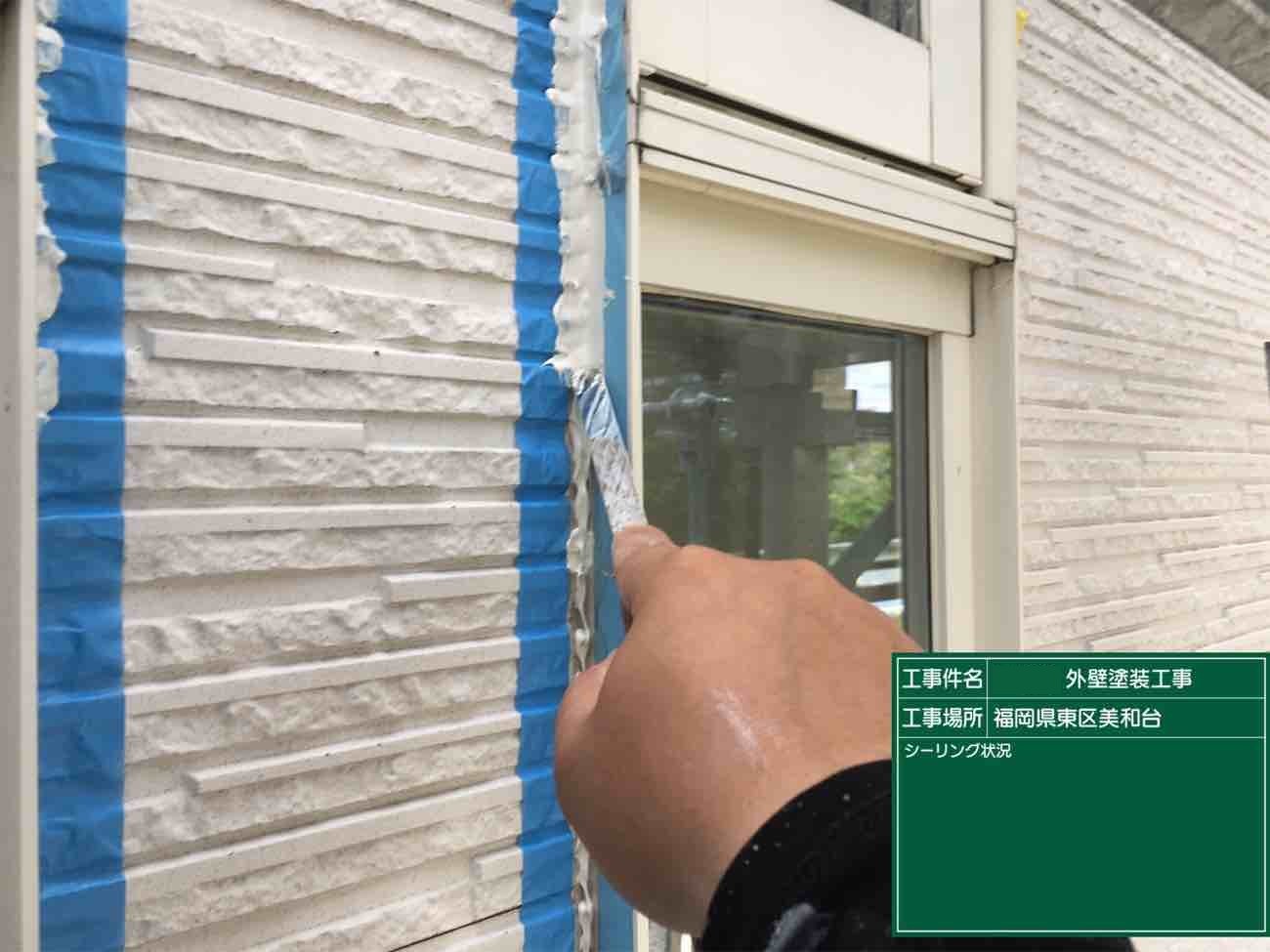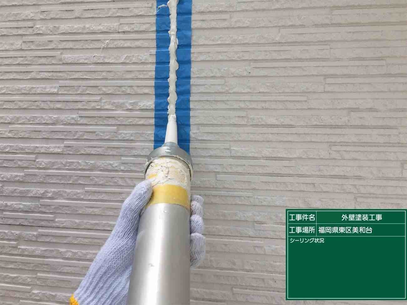 目地にシーリングを充填していきます。目地に沿って充填しています。