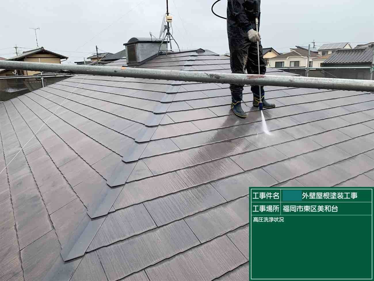 屋根の汚れを高圧洗浄でしっかり落としていきます。