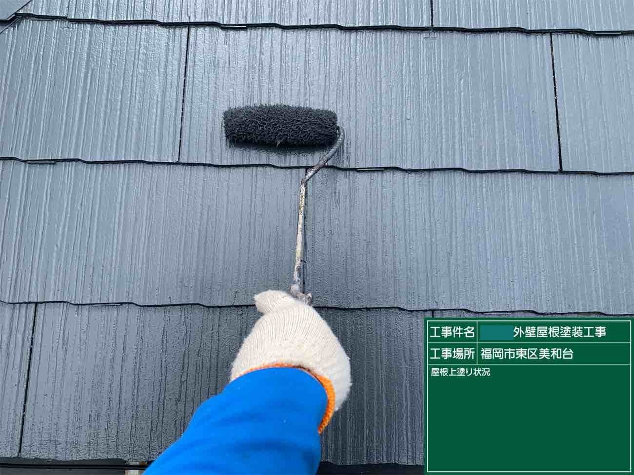 屋根の下塗り作業をし、塗料が染み込みやすくします。