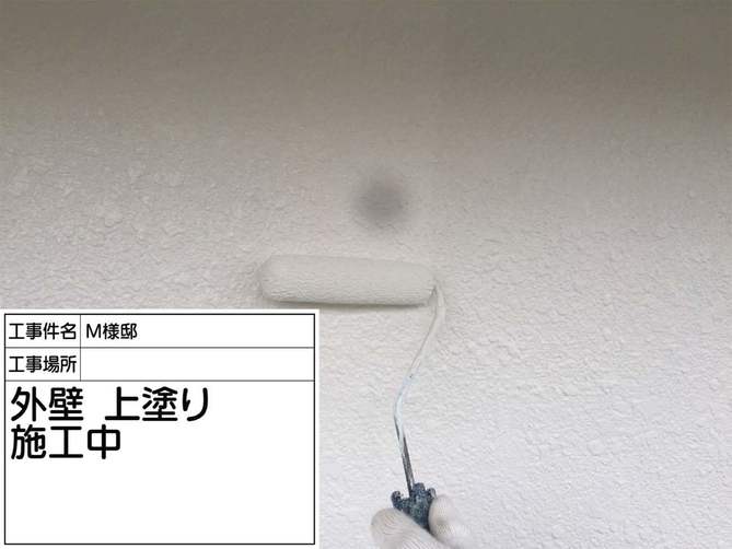 中塗り塗布完了です。 塗膜が剥がれていた箇所も丁寧に施工していきます。