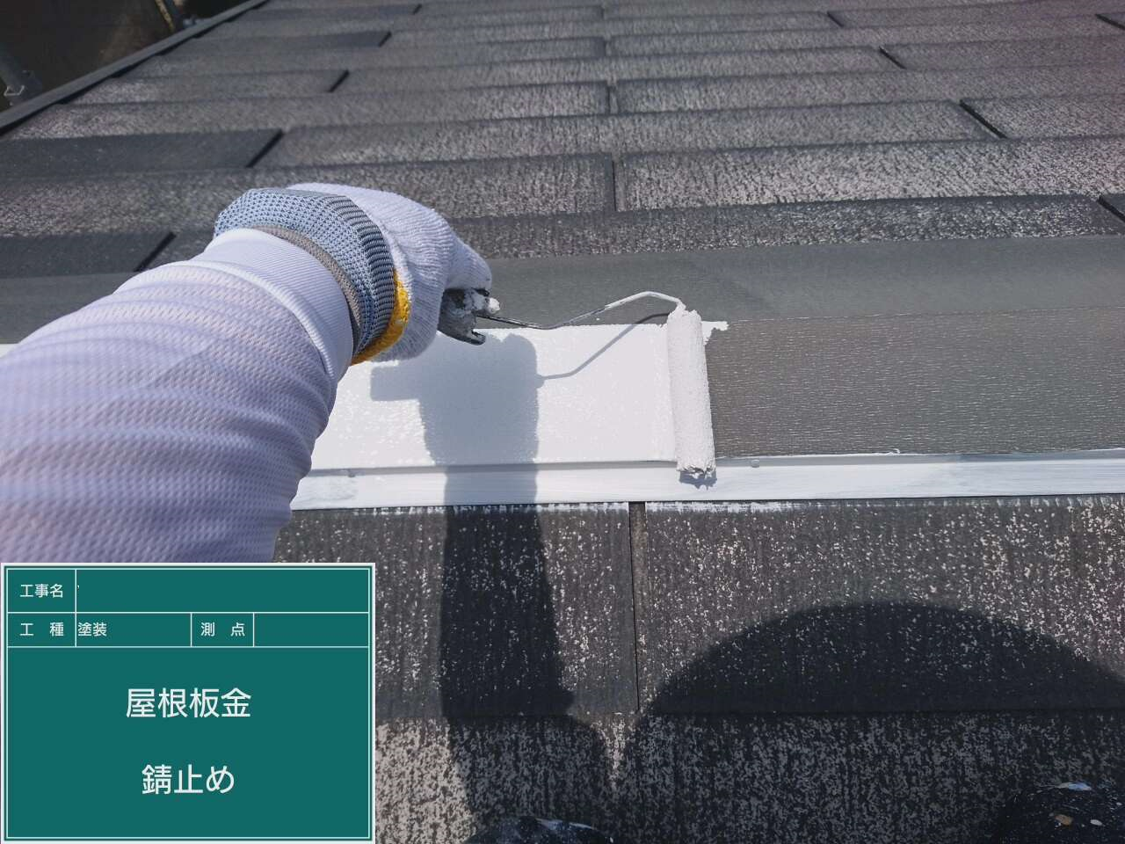 棟板板金部分に錆止めを塗りました。