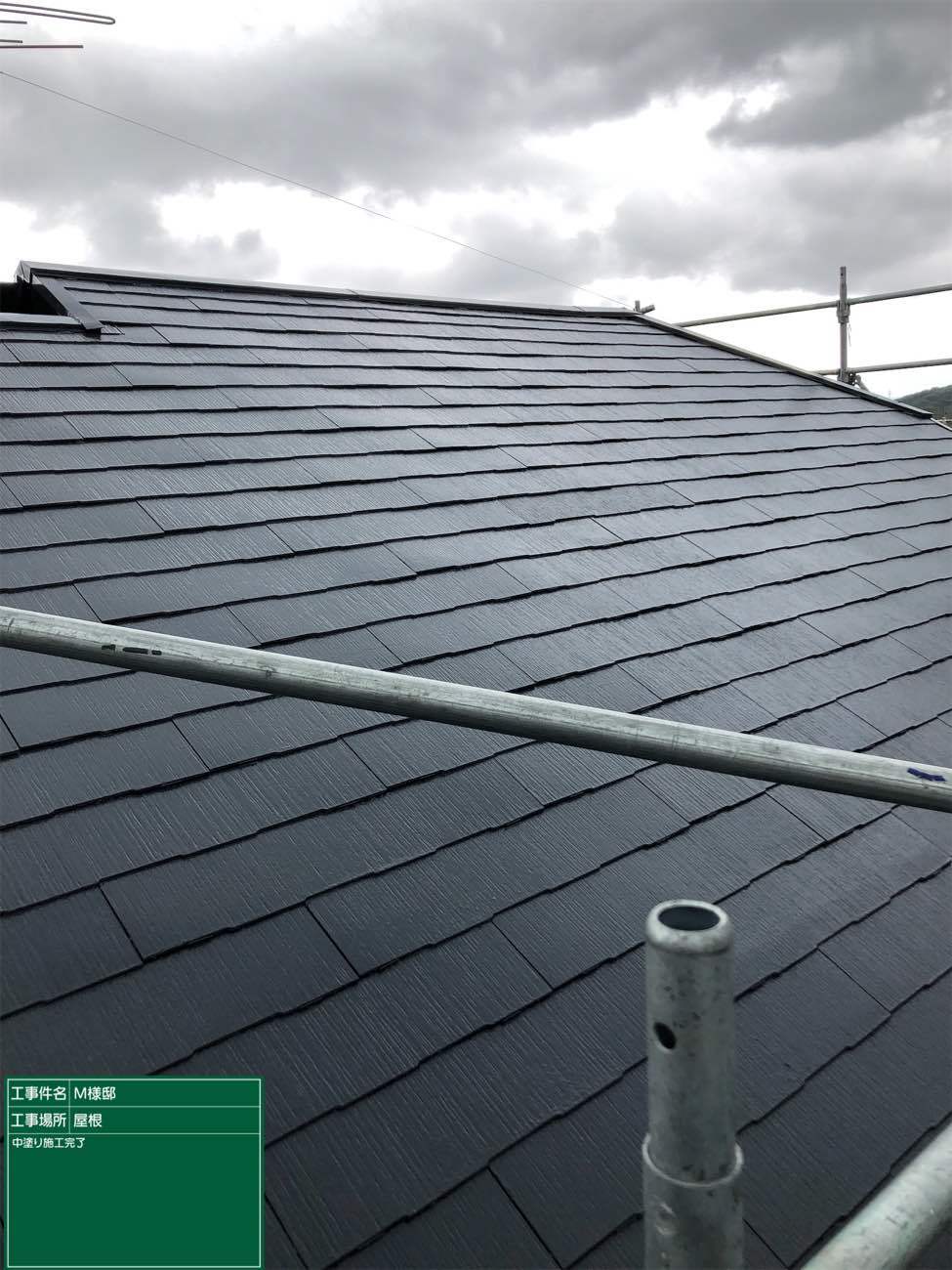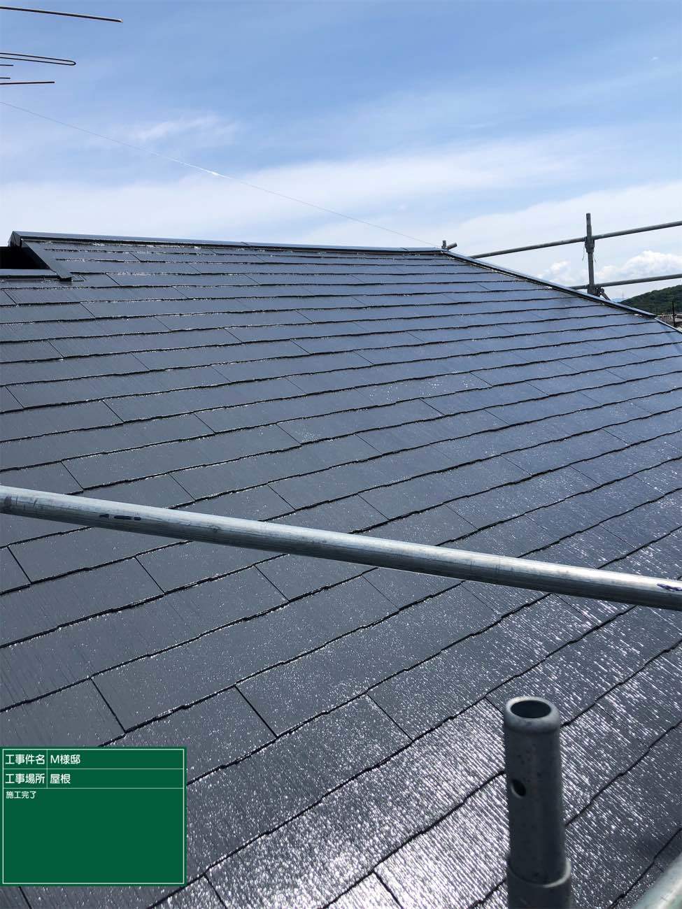 お屋根の施工完了です。 お屋根は特に直接紫外線の影響を受けてしまうので耐候性の高い塗料での塗装していくと安心ですね。