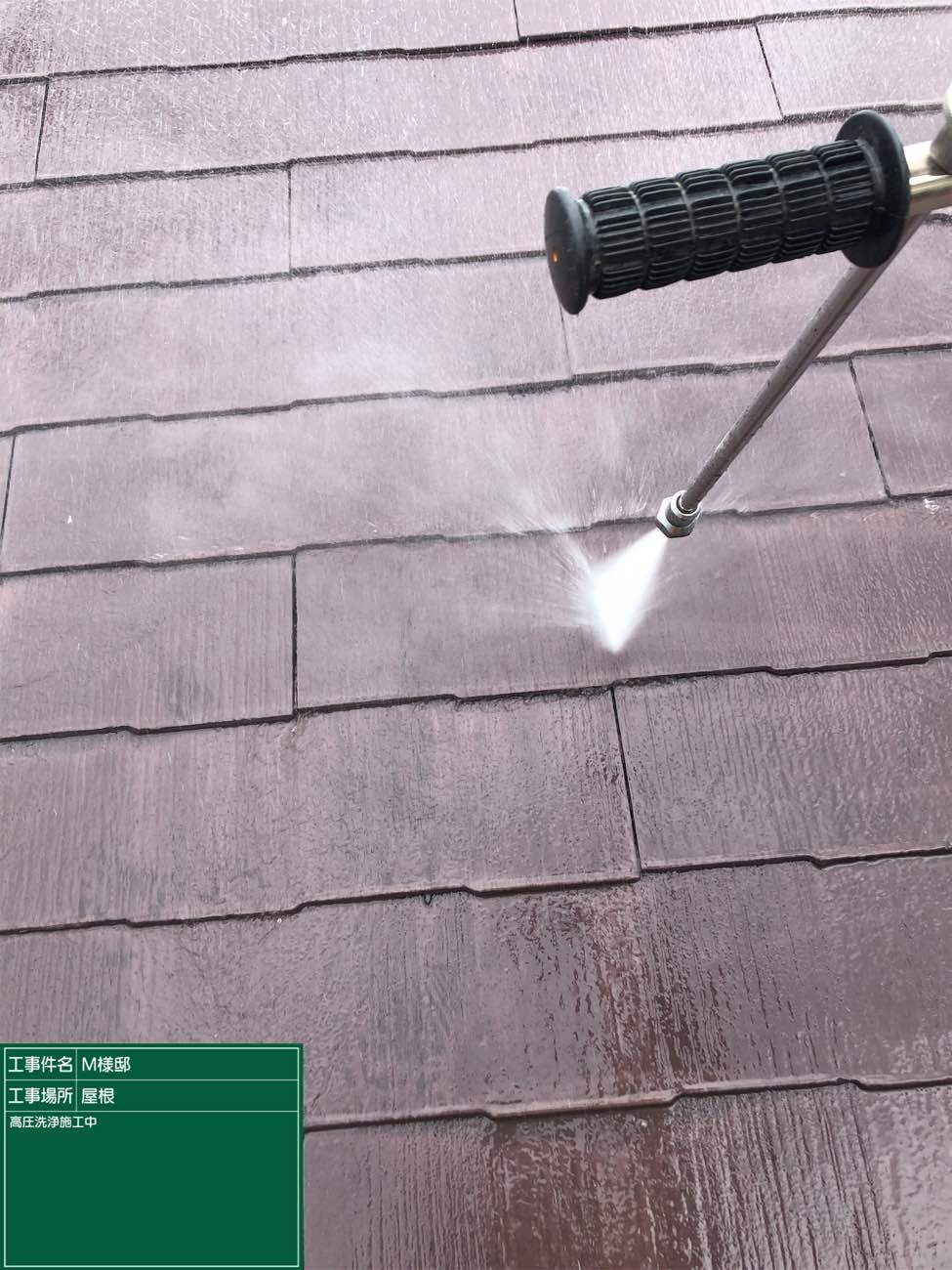 高圧のお水で汚れを洗い流します。 洗浄をしっかりと行うことで塗料本来の性能が発揮されます。