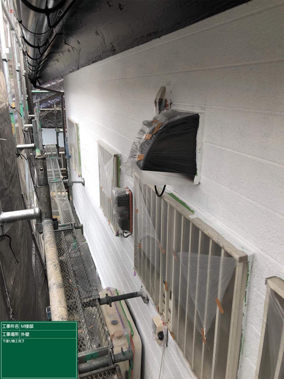 下塗り作業完了です。この工程で手を抜くと塗膜が剥がれる原因となりますので注意が必要です。