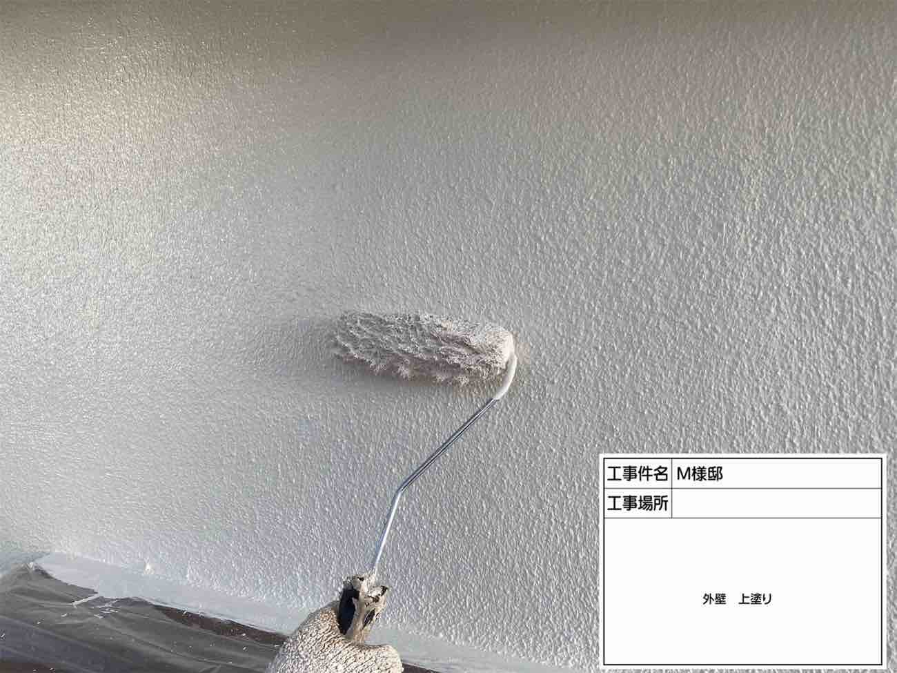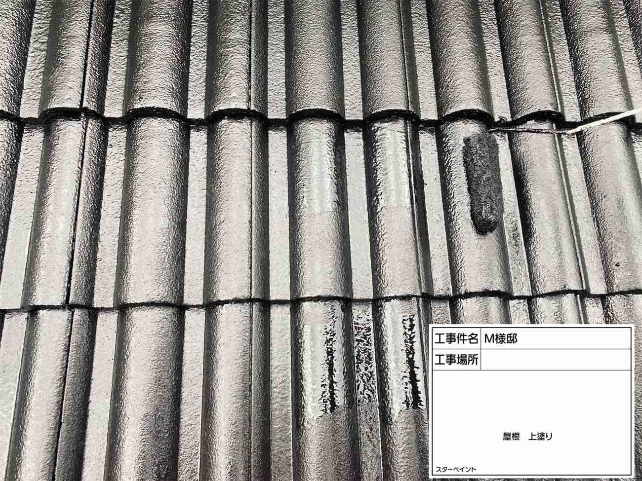 上塗り作業で塗膜の耐候性を高めます。直射日光の影響も出やすいお屋根、高耐候の塗料がお勧めです。