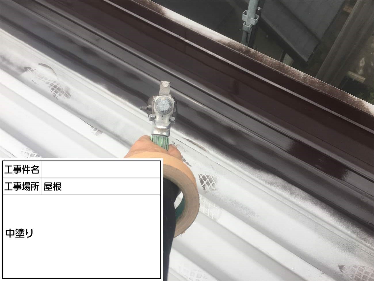 屋根は最初に錆止めをしっかり塗ります。 これで錆をつきづらくします。