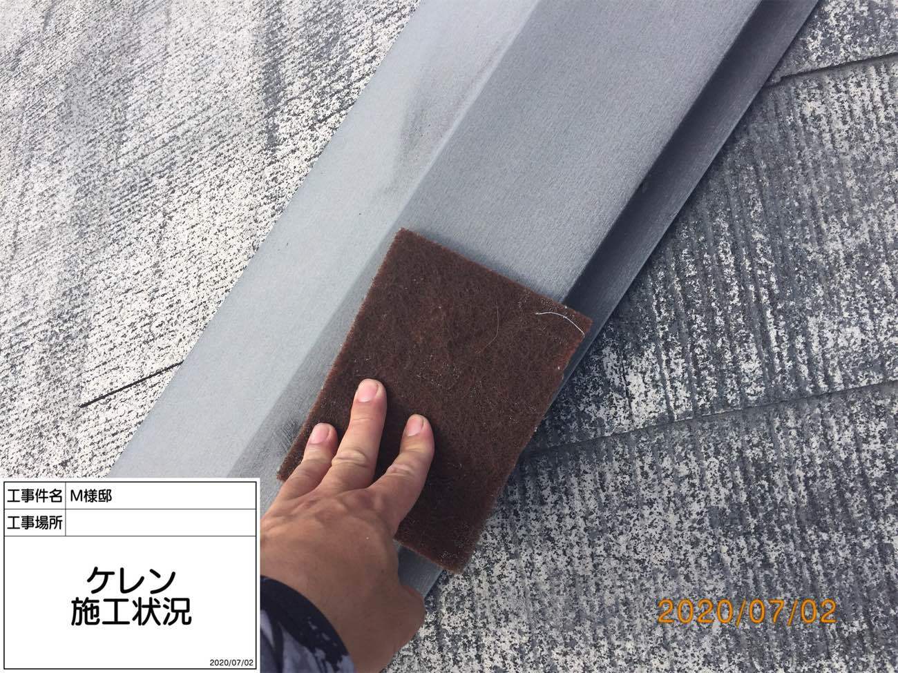 チョーキングが起きている表面の粉状の顔料や汚れなど落としていきます。