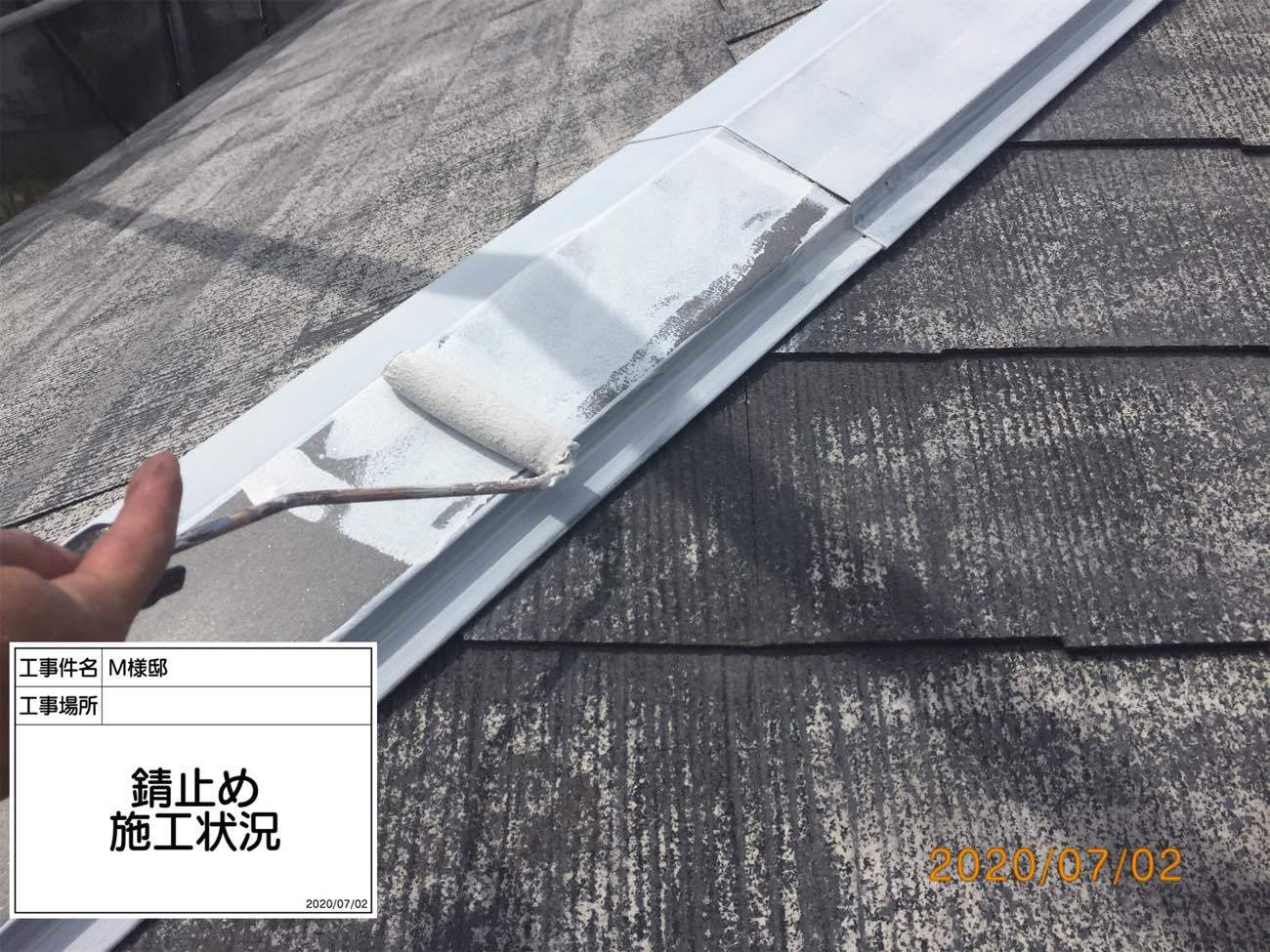 少々お写真が見にくいですが、上塗り工程です。 屋根の仕上げの工程です。