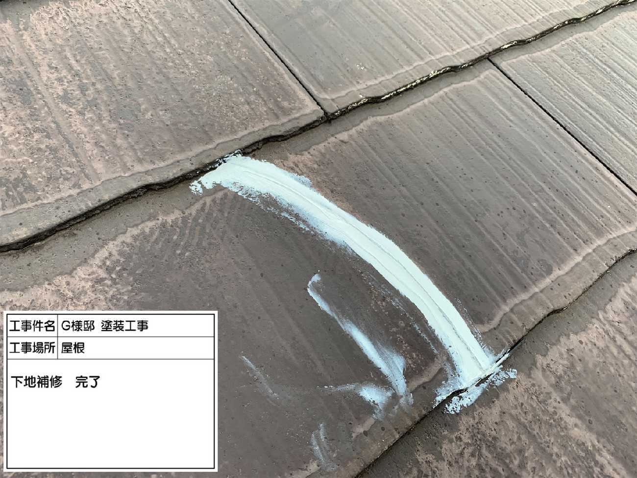 下塗り完了。まだこの段階では補修箇所が見えています。