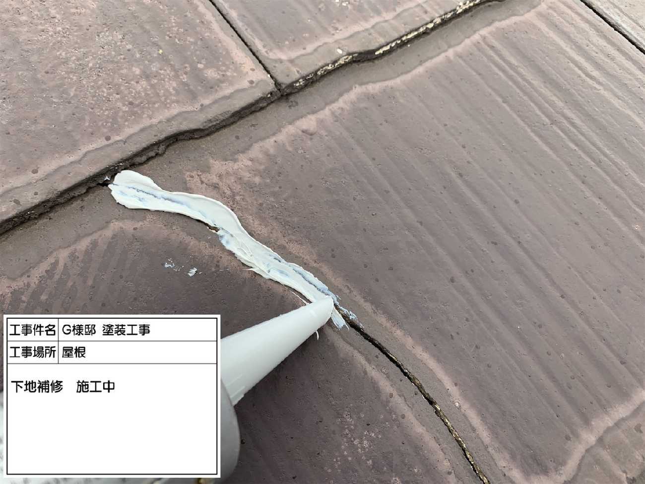 塗装の前にはクラック(ひび割れ)の補修を先に行います。