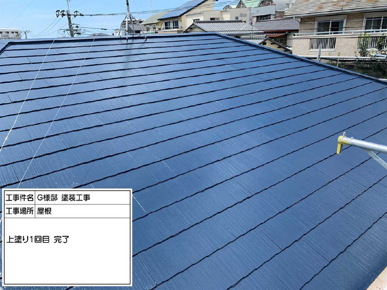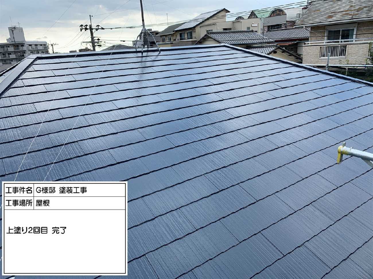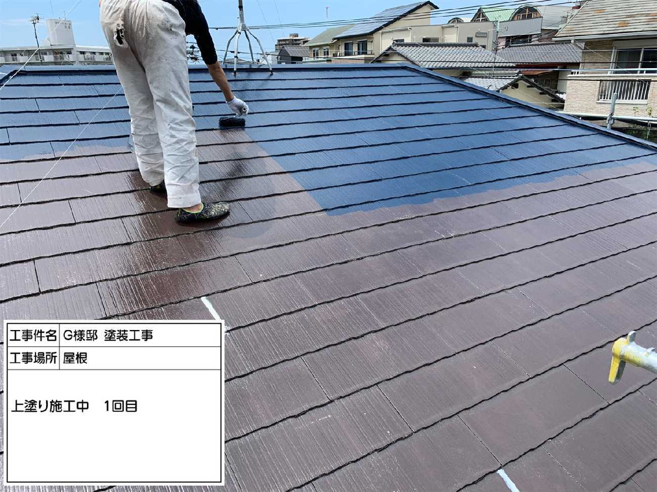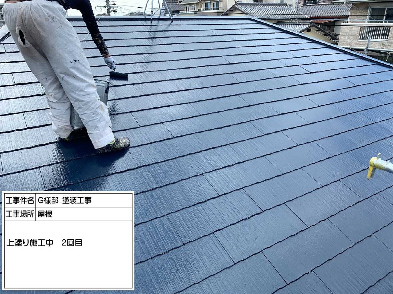 上塗りは仕上げの工程。 塗料の持つ性能をしっかり発揮するために、塗膜の厚みを適切にするため、工程を分けて施工していきます。