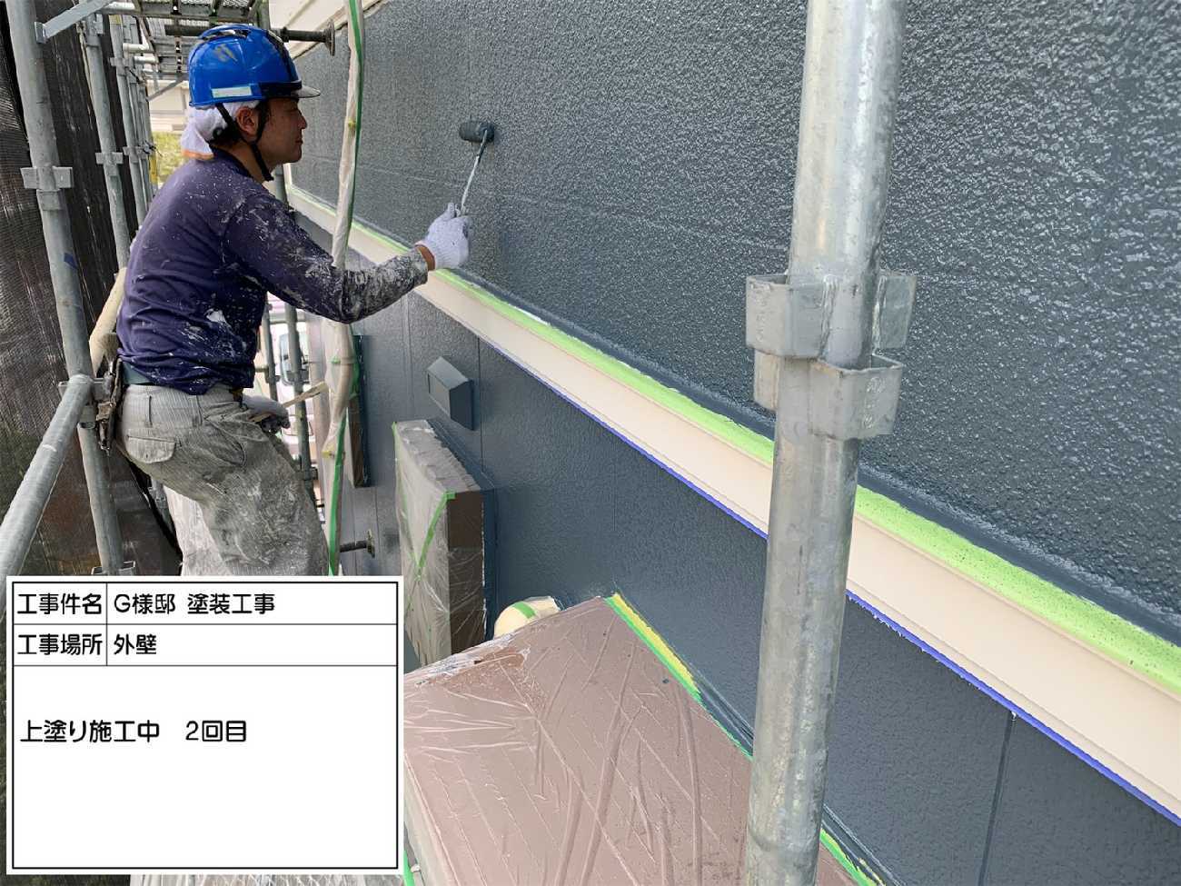 中塗りは色が入る段階なので施工の様子がよくわかります。