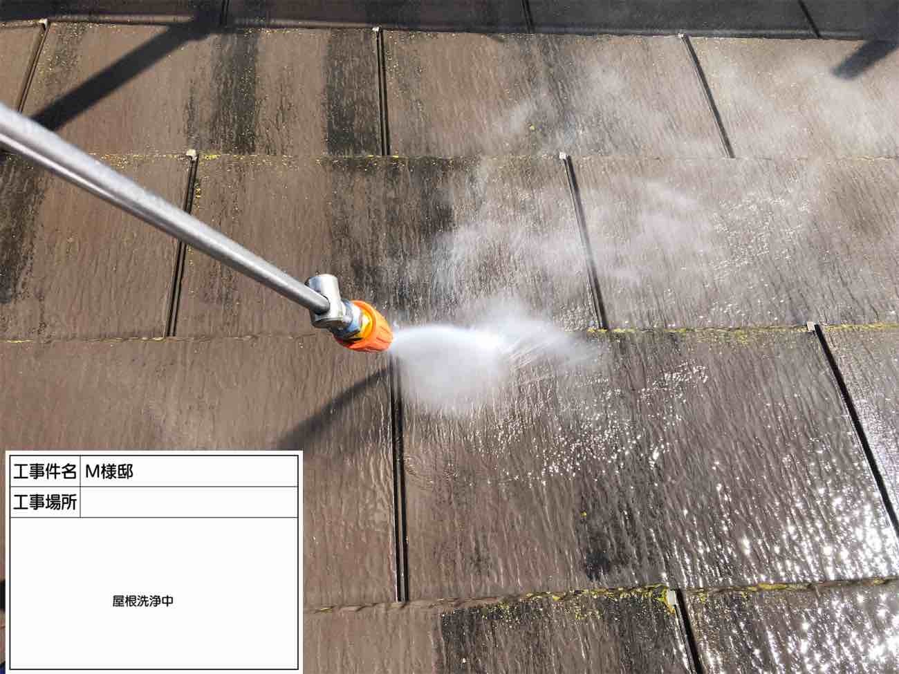 屋根の汚れを洗い流していきます。
