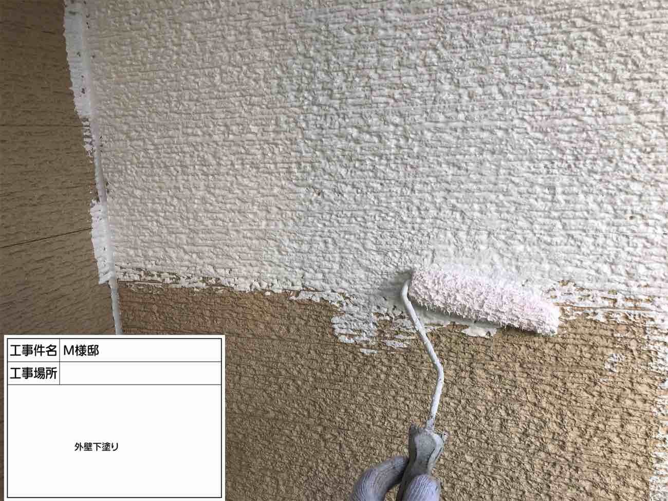 外壁の下塗り作業です。