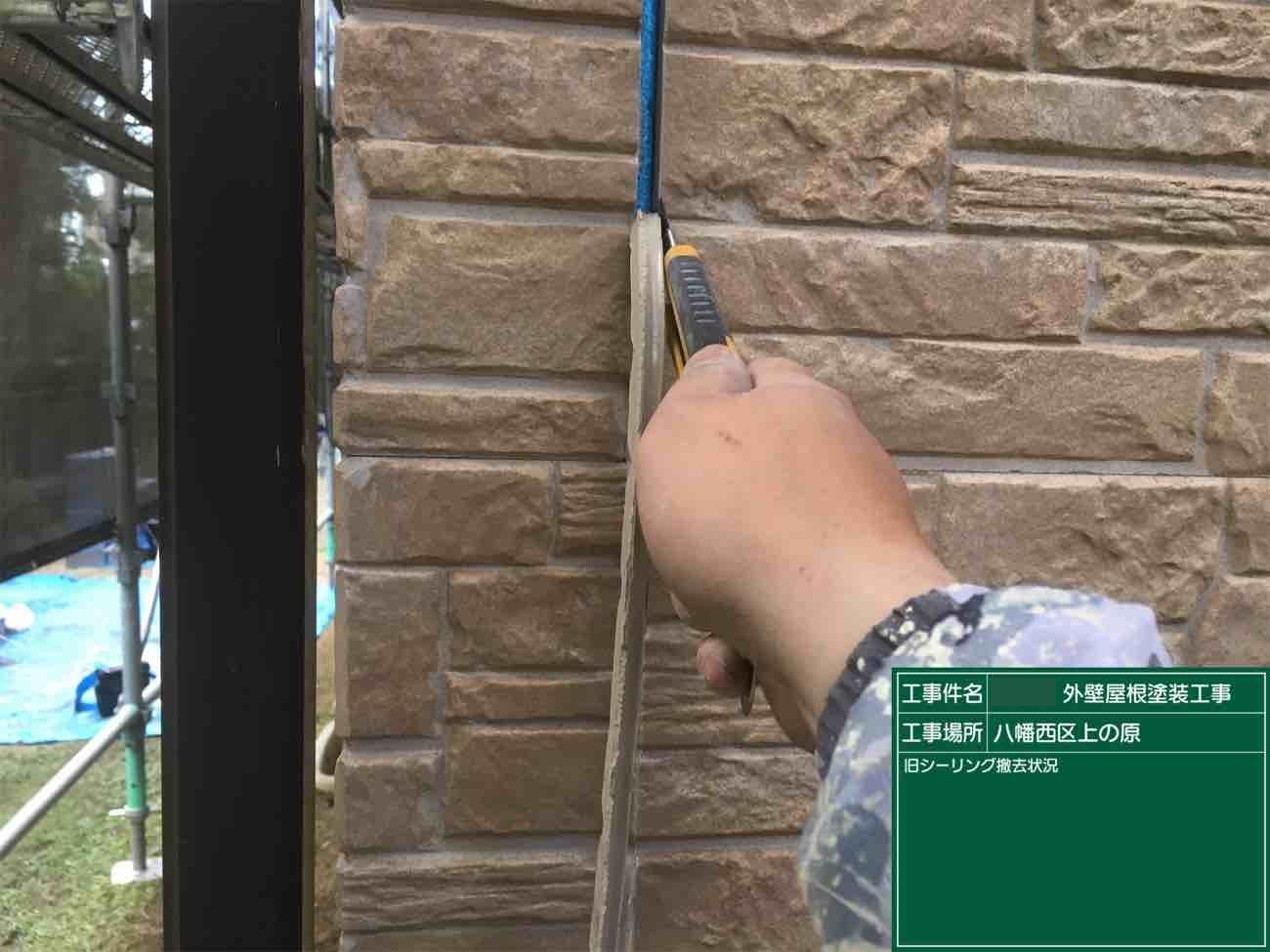 塗装作業を行う前に目地のシーリング打ち替え作業を行っていきます。