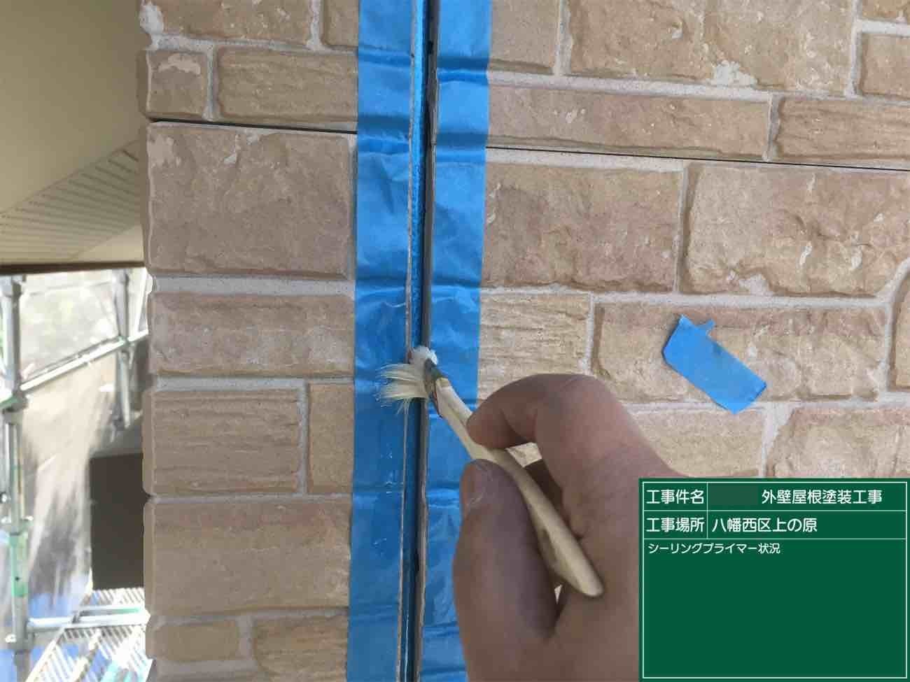 目地にプライマーという接着作用のあるものを塗布していきます。