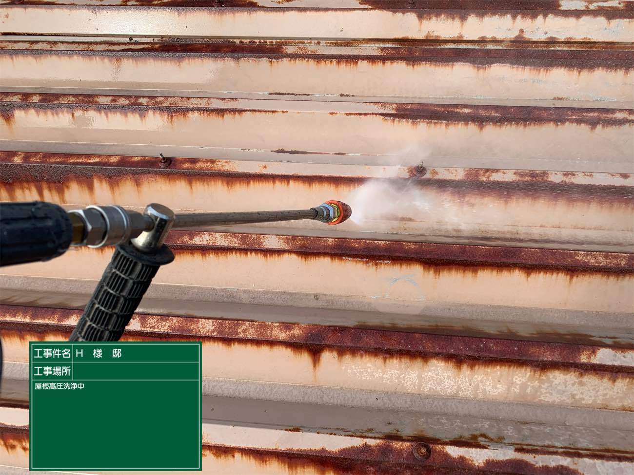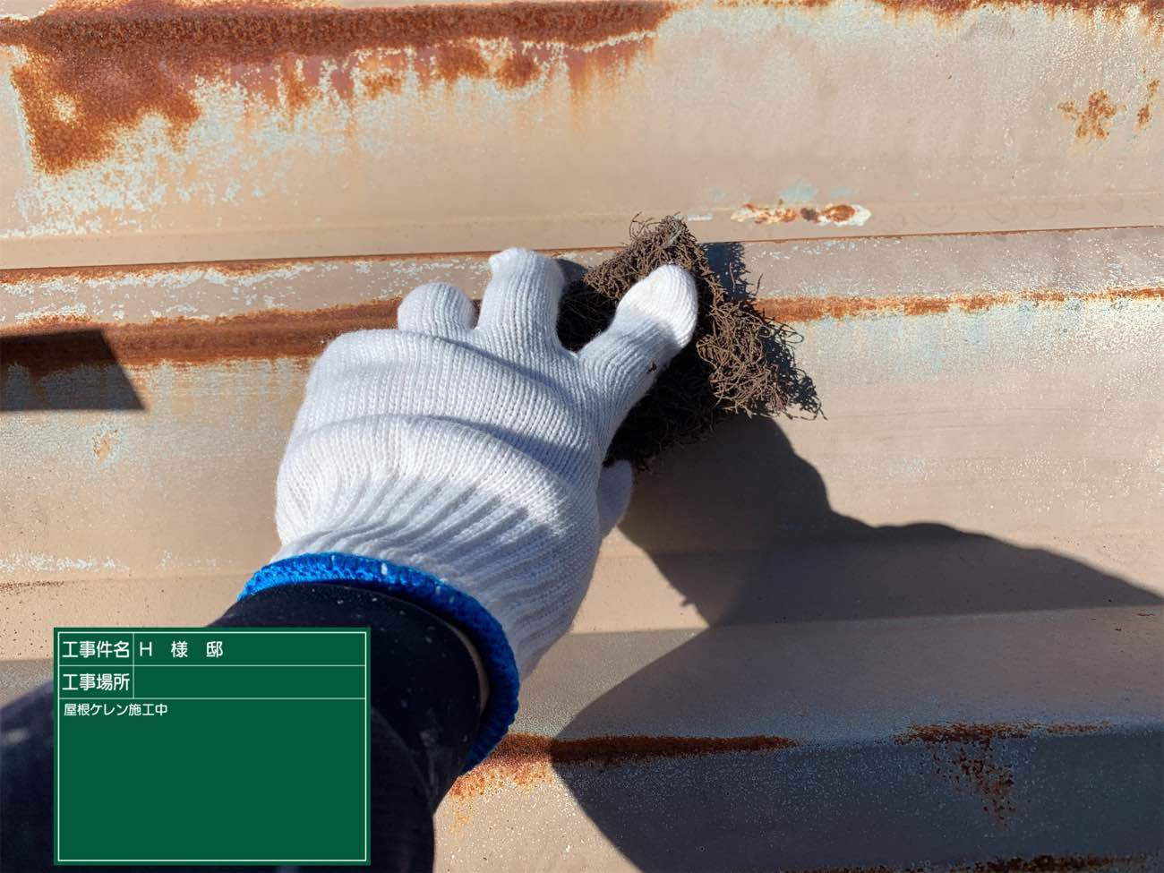 屋根のコケや汚れも強力な高圧洗浄で落としていきます。