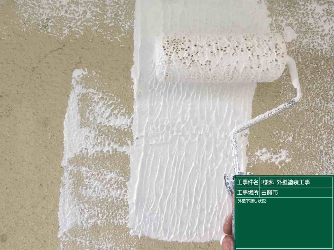 下塗り作業完了です。ここでで手を抜くと塗膜が剥がれる原因となるためとても重要な工程です。