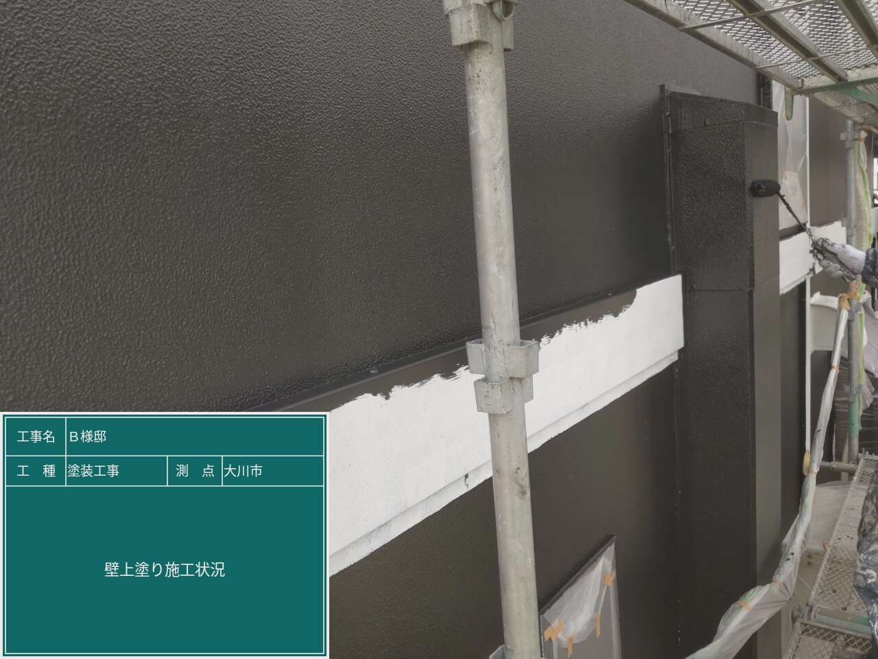 塗膜の厚みを作る上塗り工程。美観にもこだわってぬっていきます。