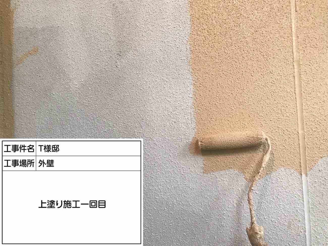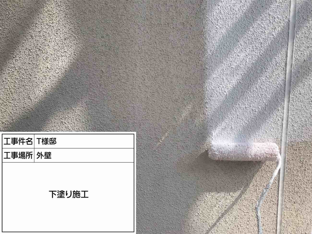 外壁の下塗り作業で中塗り塗料との密着度を高めます。