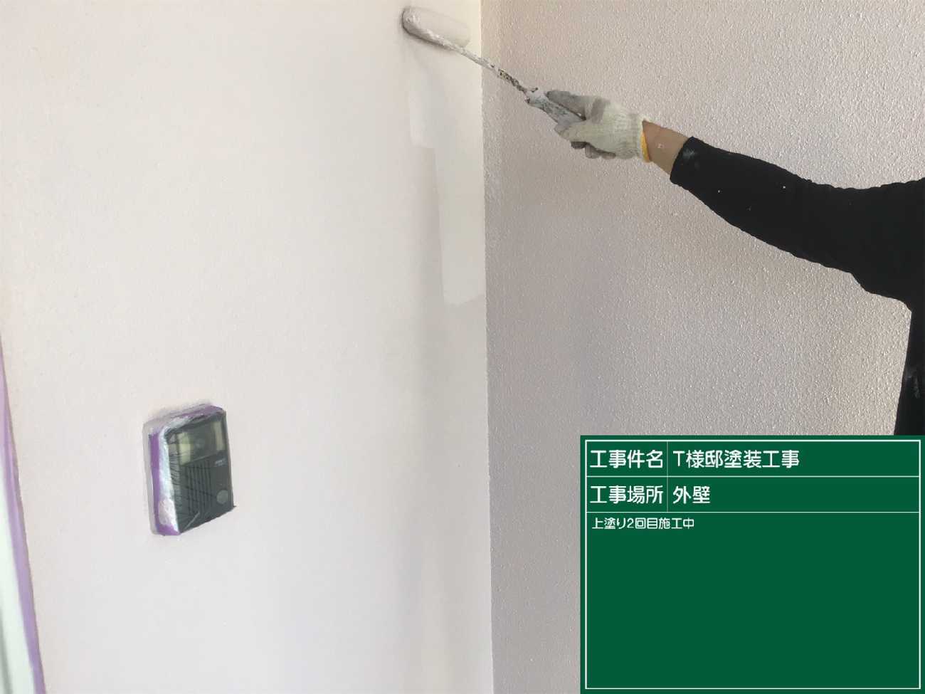 美観にも直接かかわる上塗り工程。塗りムラや無理残しが出ないように注意して塗っていきます。