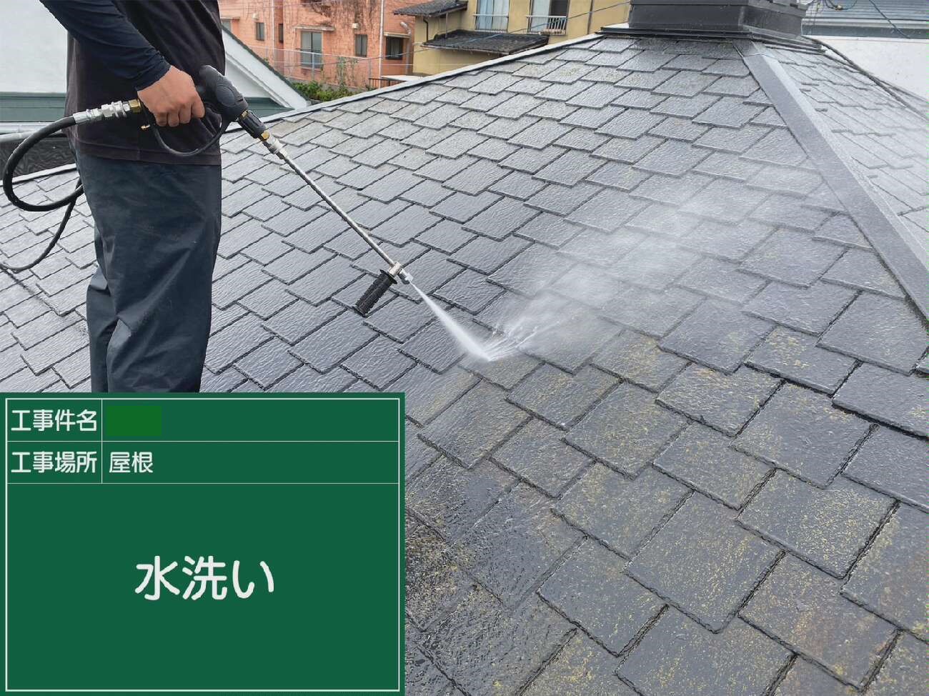 屋根も同様に、コケやカビの汚れを洗い流します。