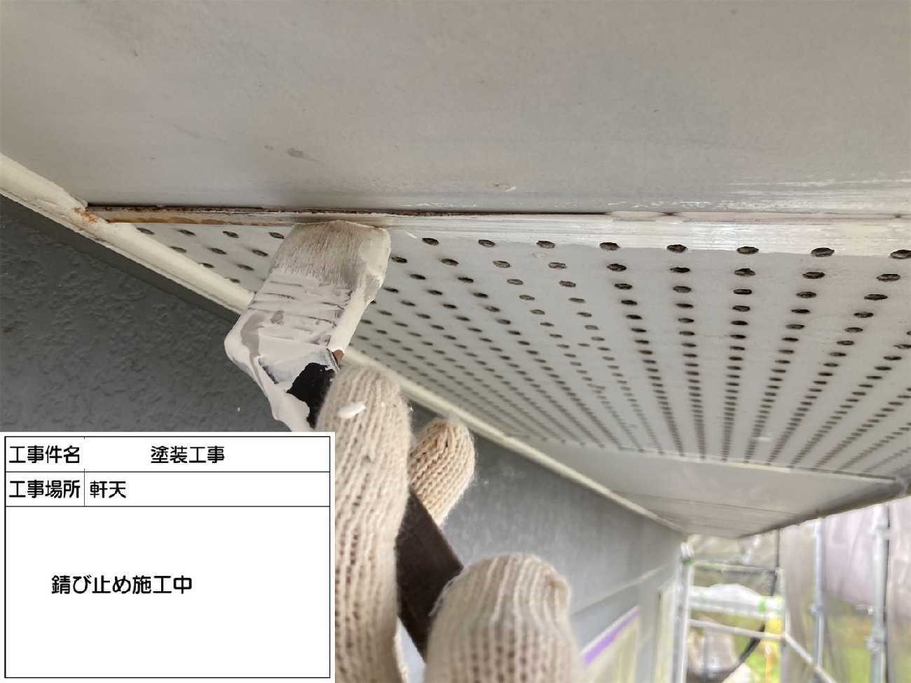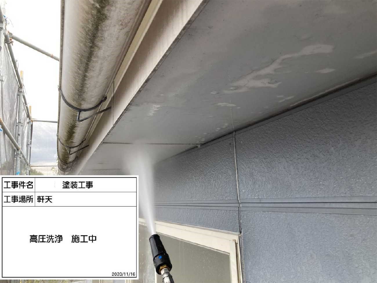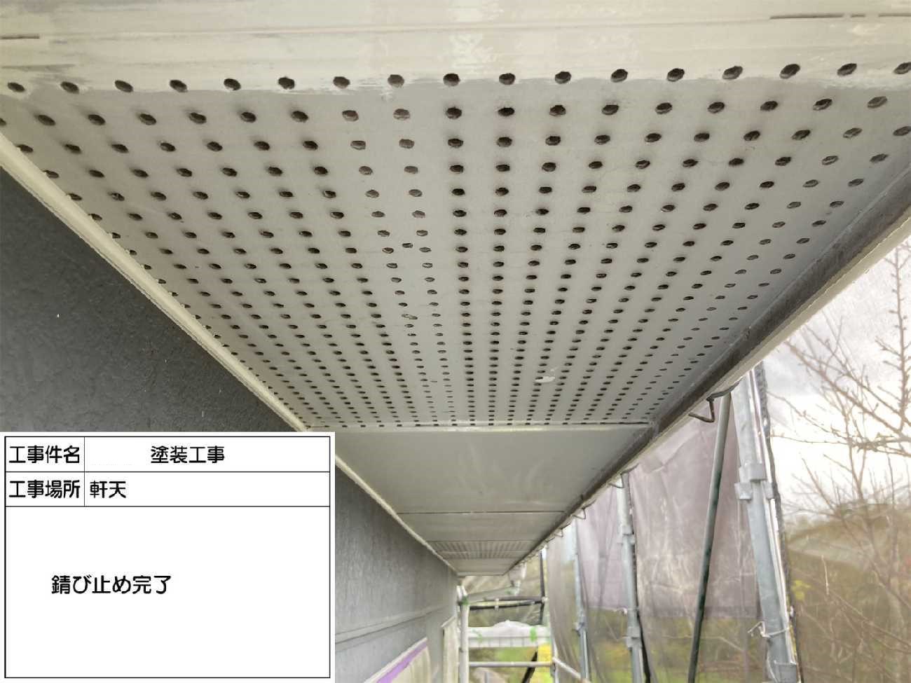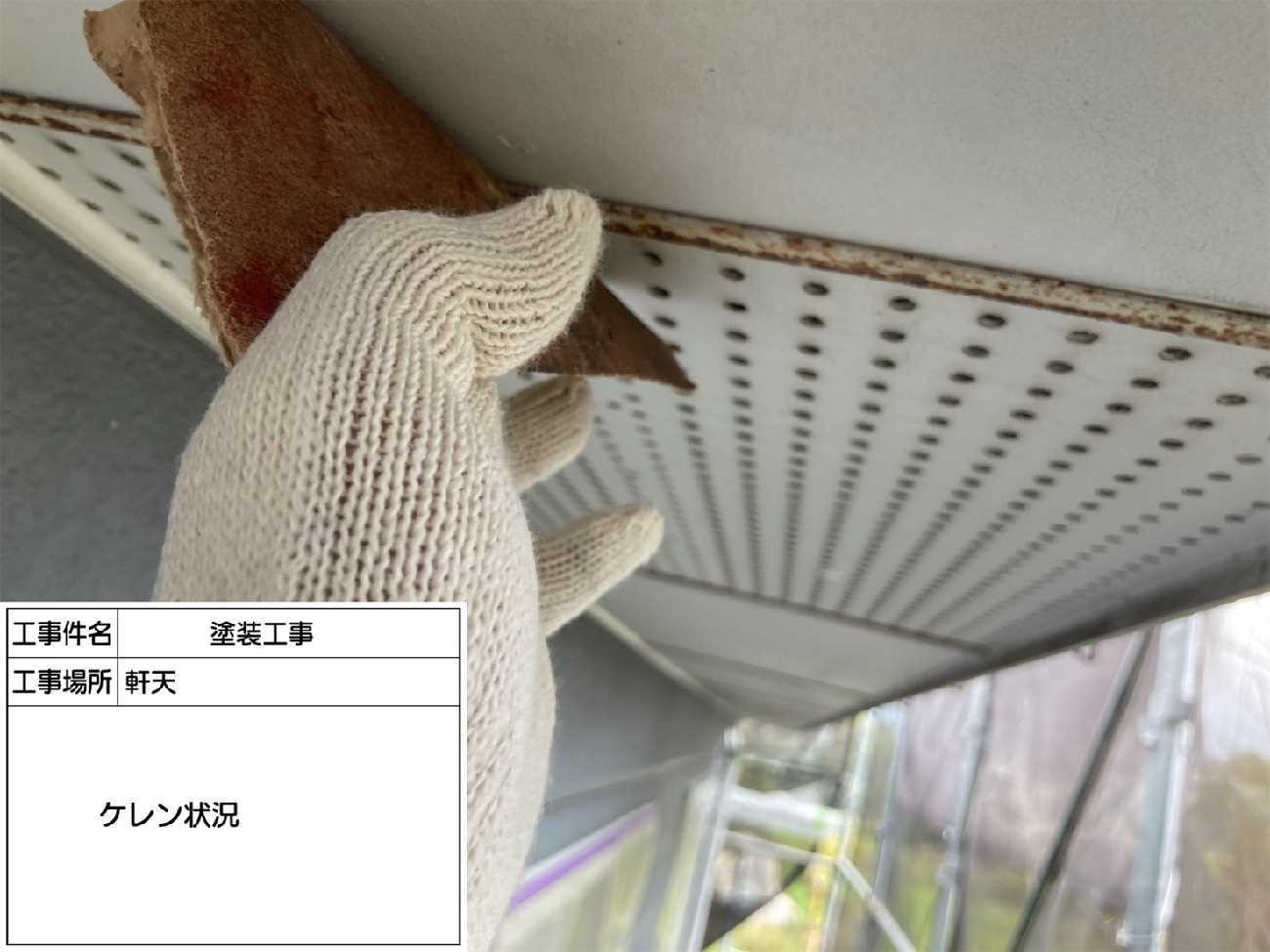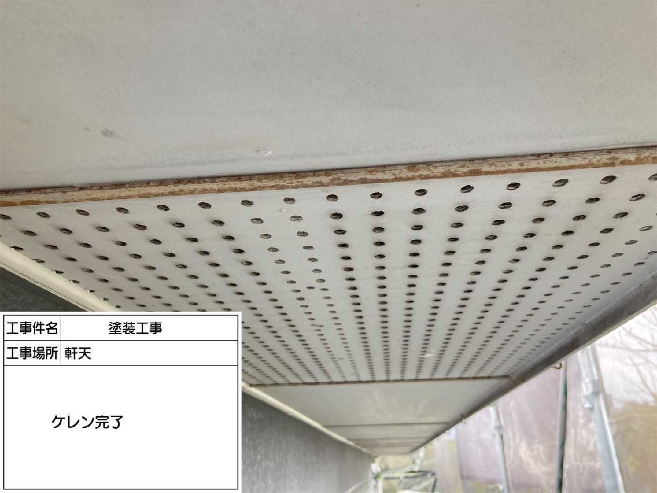 軒天は高圧洗浄では落ちなかった汚れをケレンで、整えていきます。