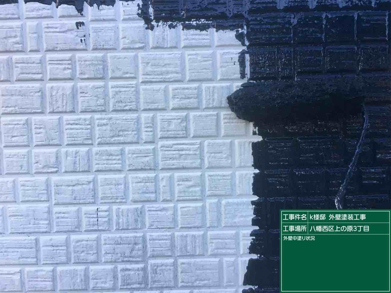 外壁の塗装を行っていきます。今回は外壁は2色仕上げになりますので 下塗りから塗っていきます。