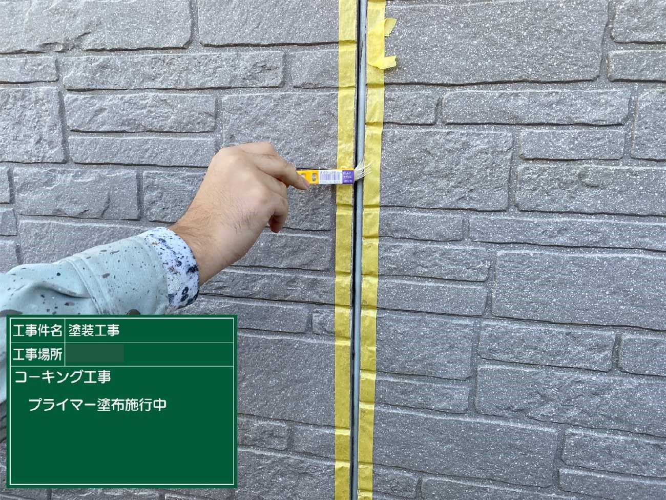 シーリング撤去が完了したら、目地の側面にプライマーという接着剤を塗布していきます。
