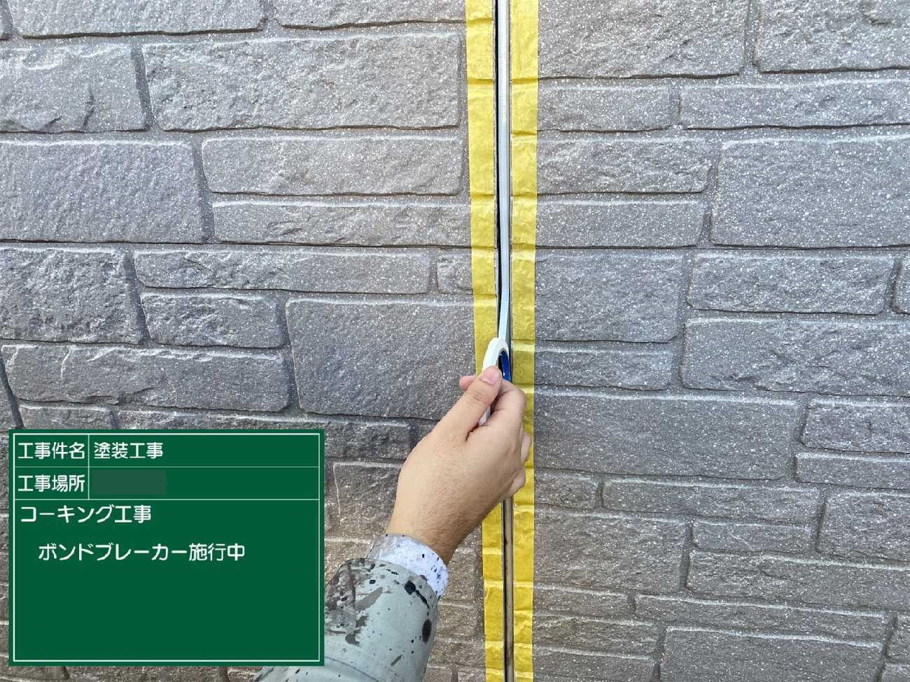 塗布後は目地の底にボンドブレーカーを接着させ、シーリングの3面接着を防ぎます。