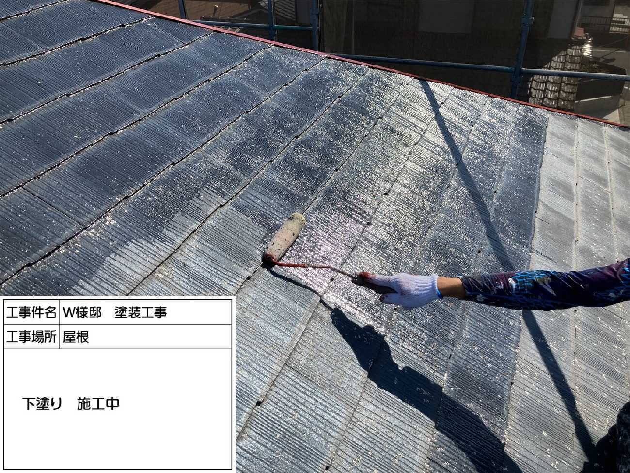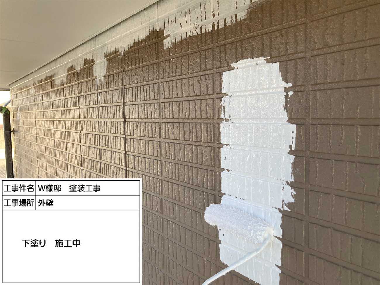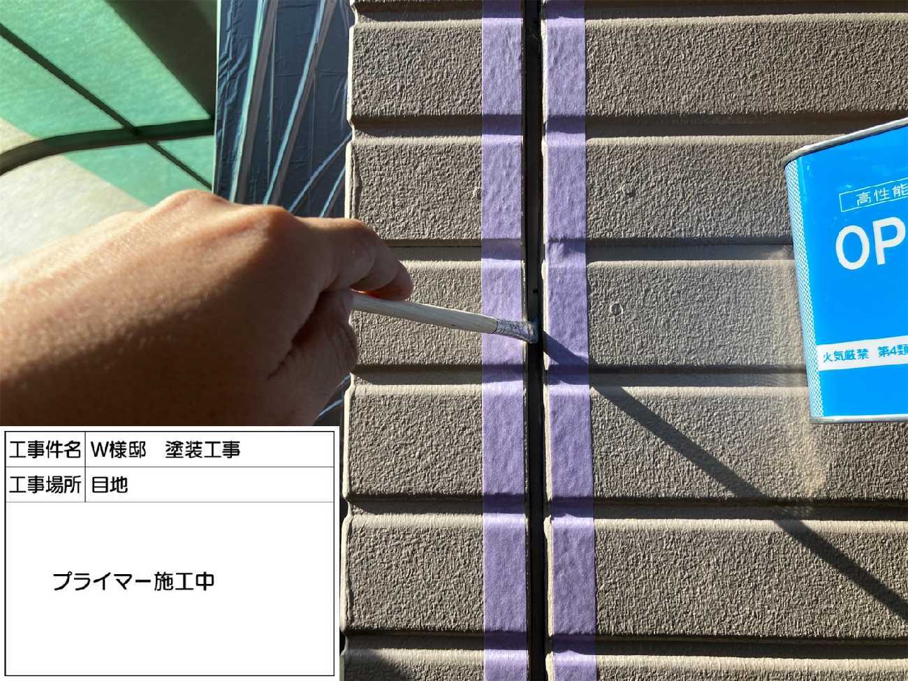 シーリングの施工が完了したら次は下塗り工程です。くまなく塗っていきます。