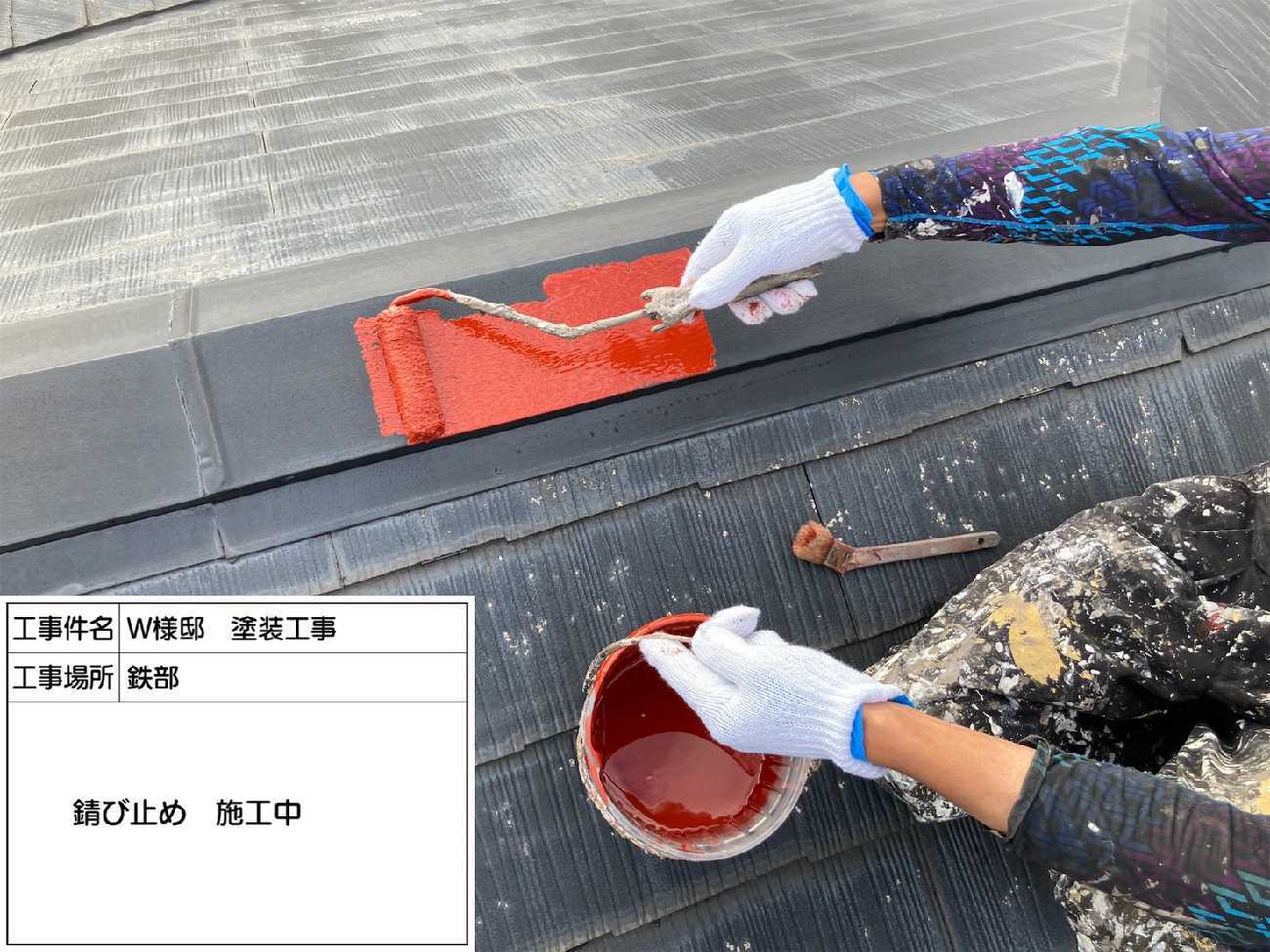 下地調整の後は錆止め塗料を塗布していきます。板金の部分にはこのひと工程がとっても需要。