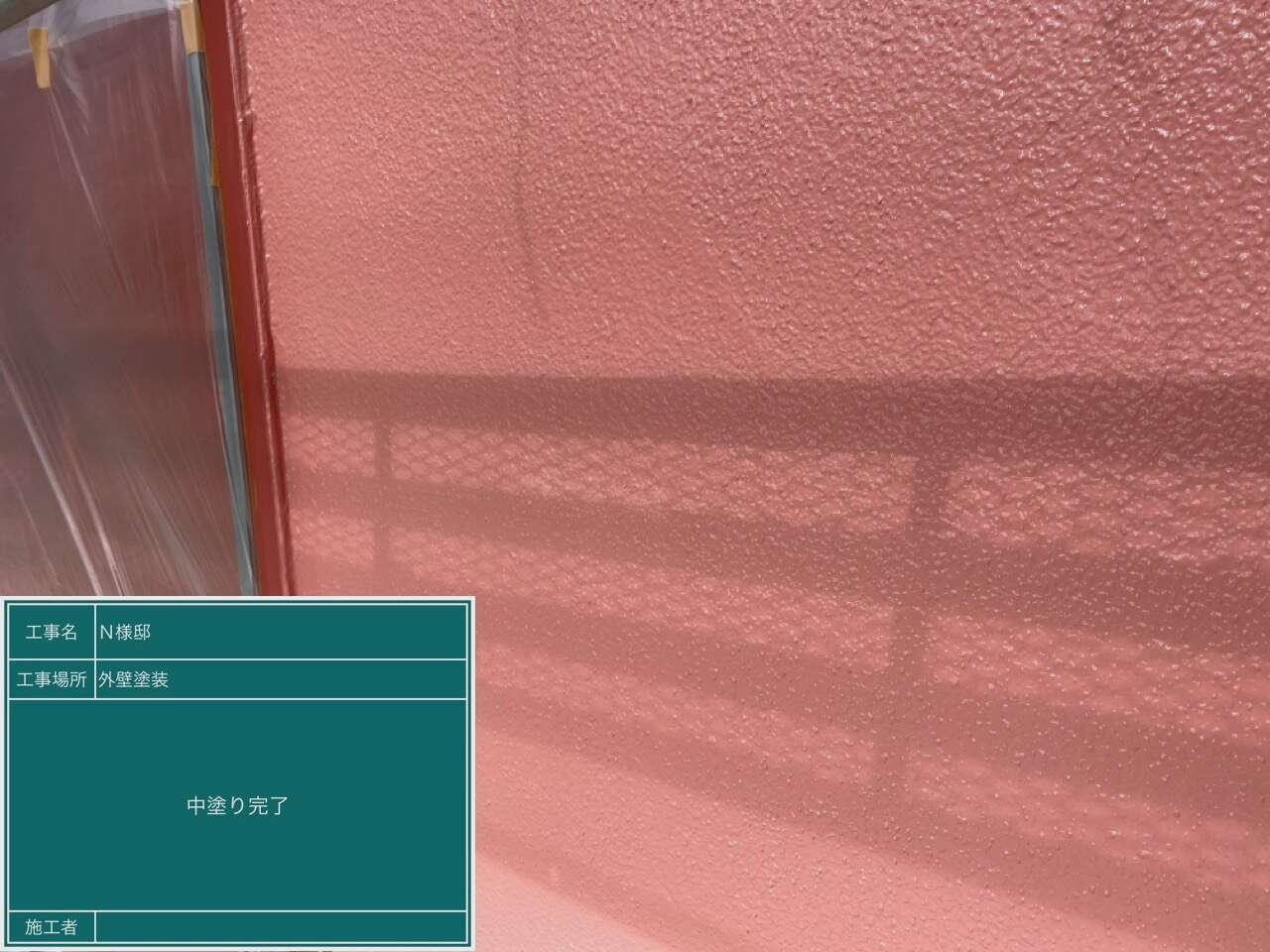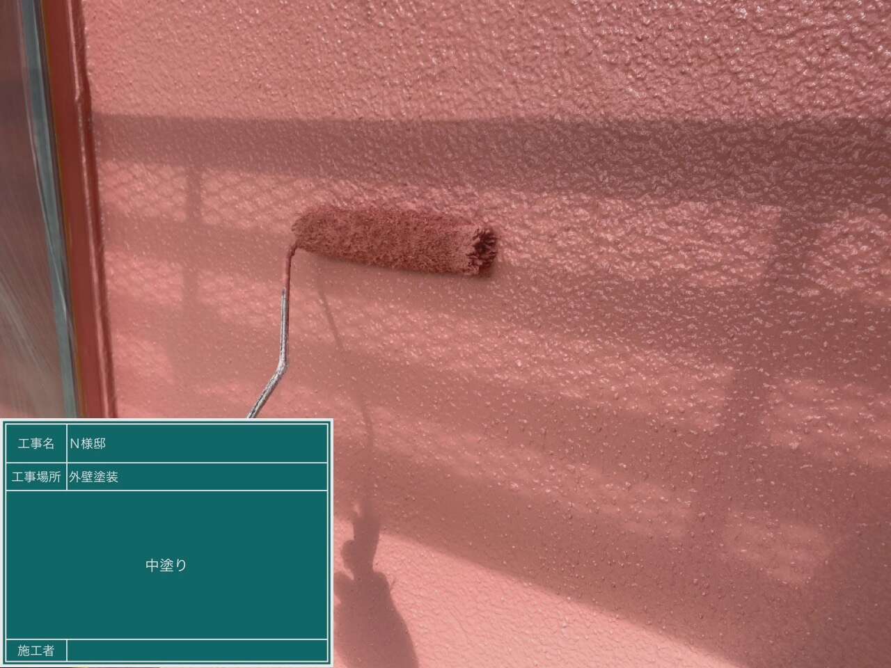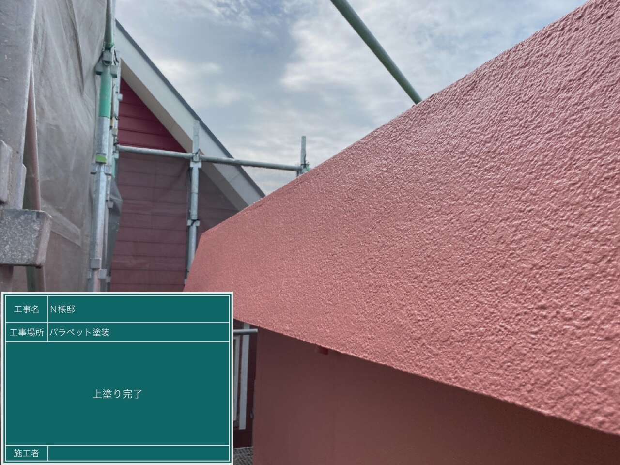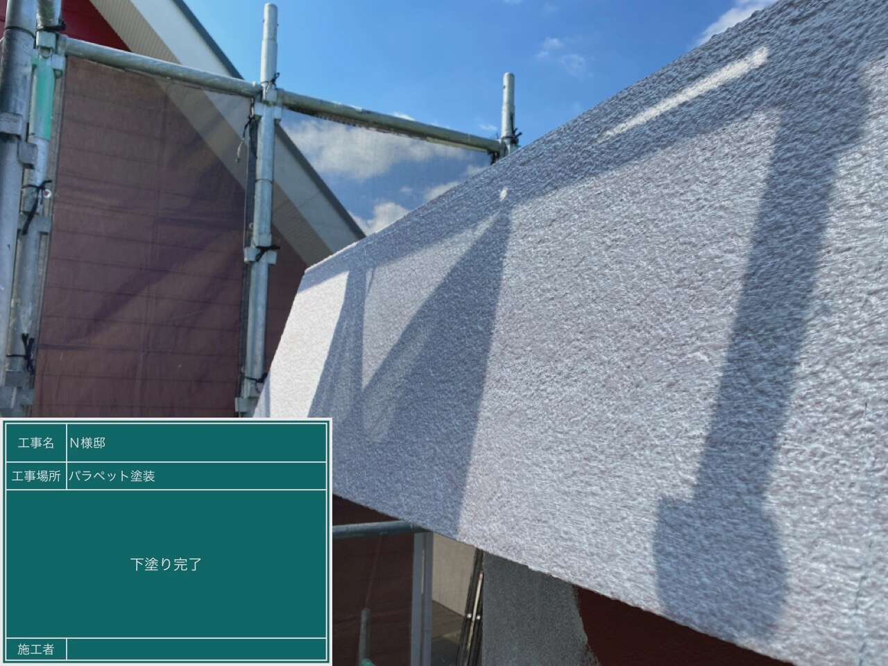 パラペットも外壁同様、中塗り作業で塗膜に厚みを持たせます。