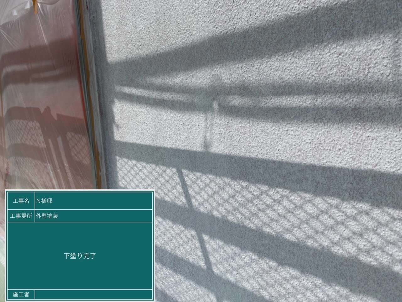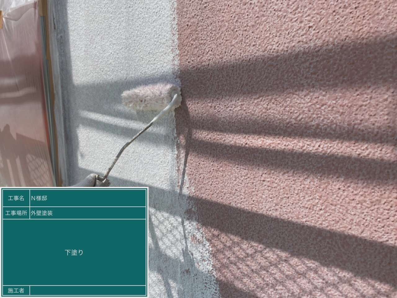 外壁の下塗り作業で中塗り塗料との密着度を高めます。