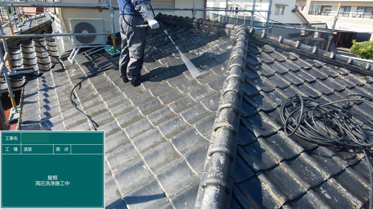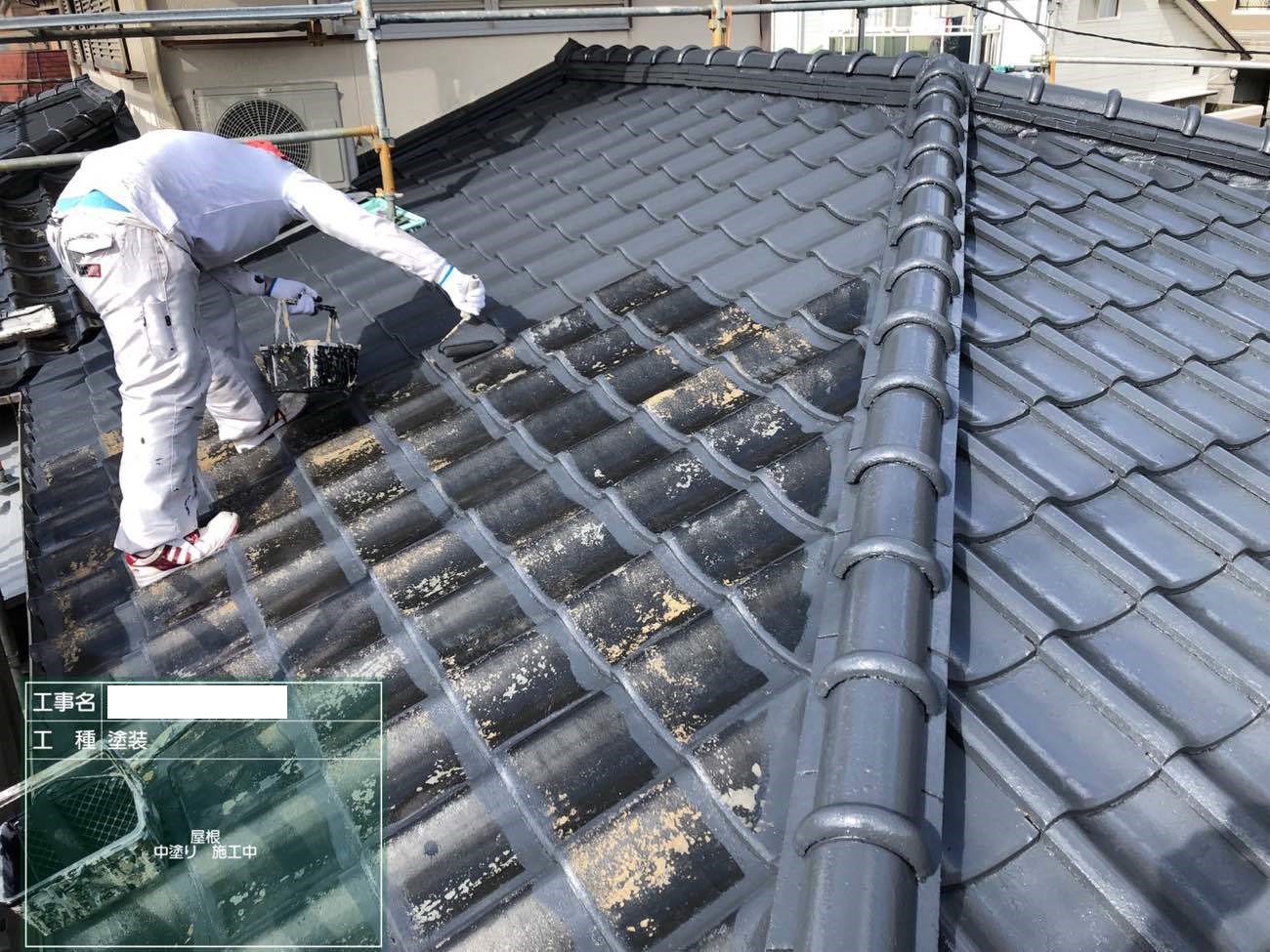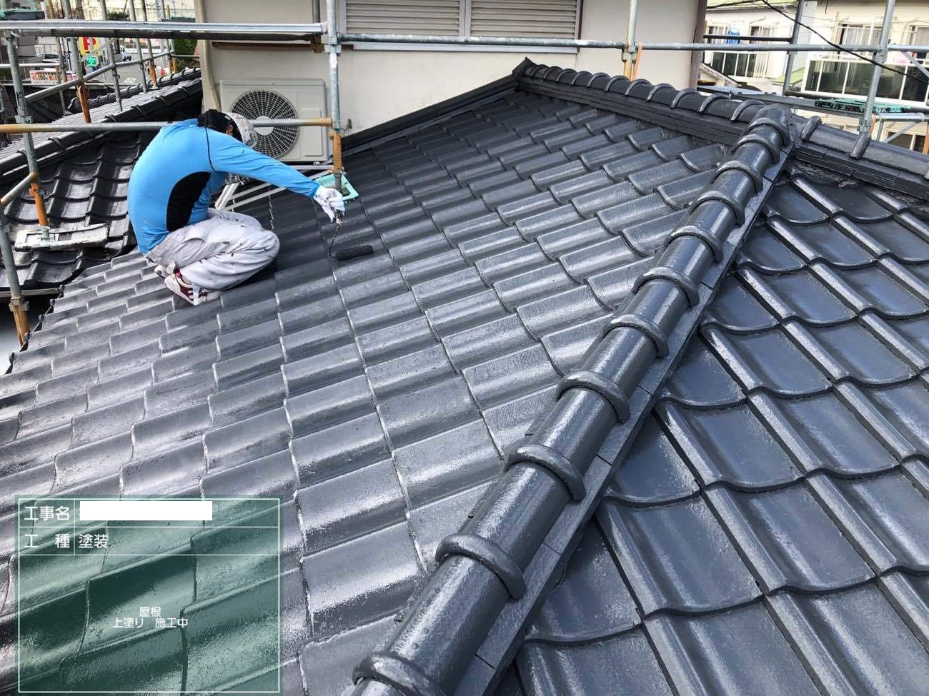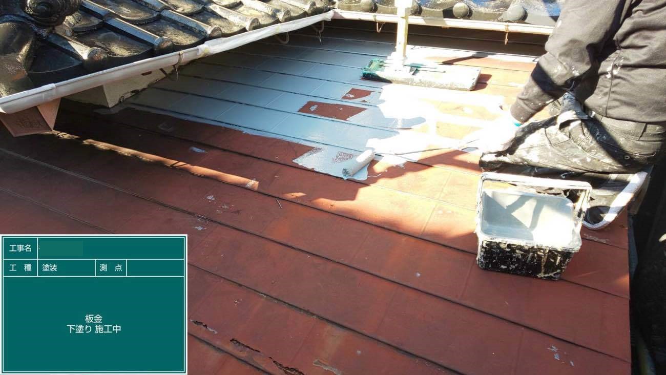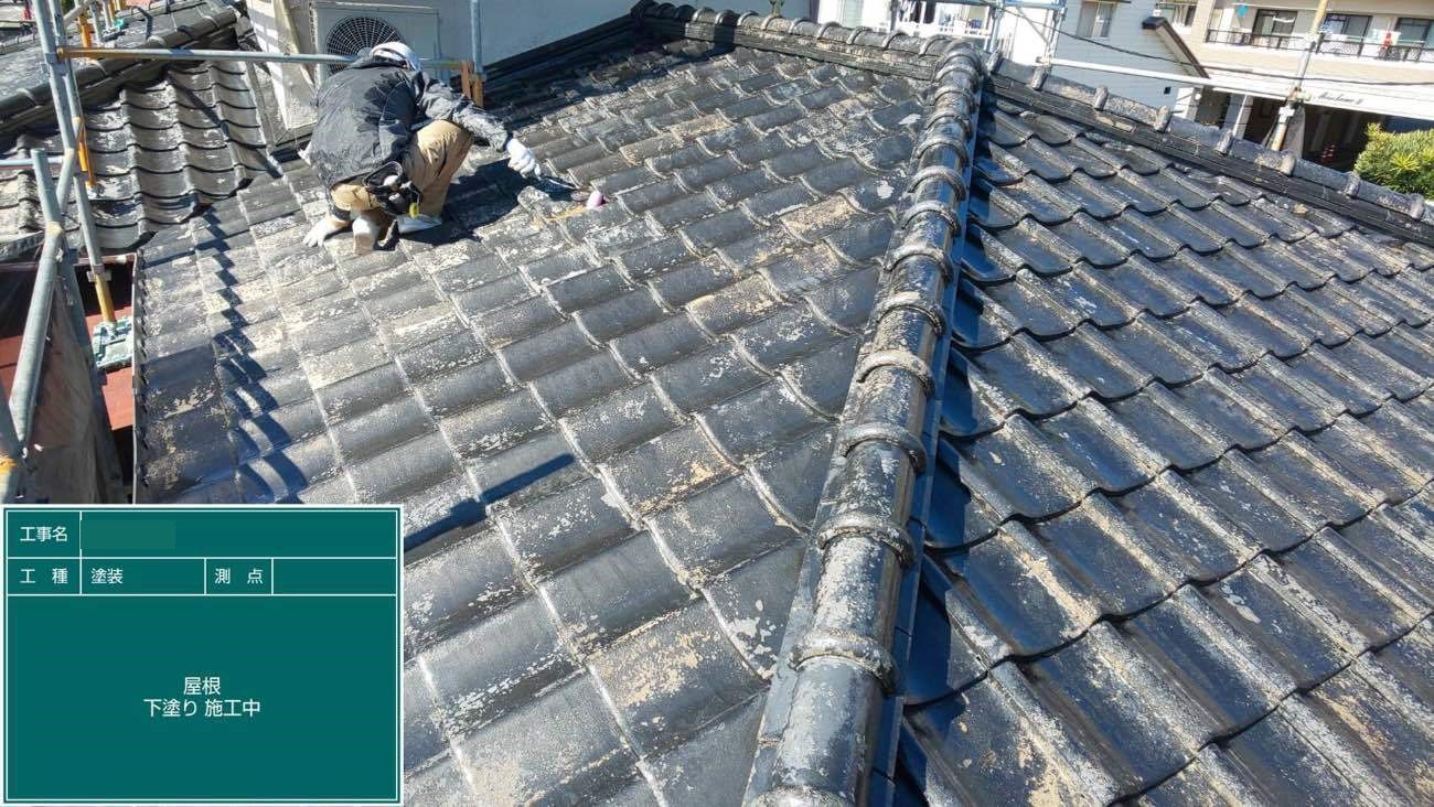 屋根についた汚れを落としたら、下塗りで下地を整えます。
