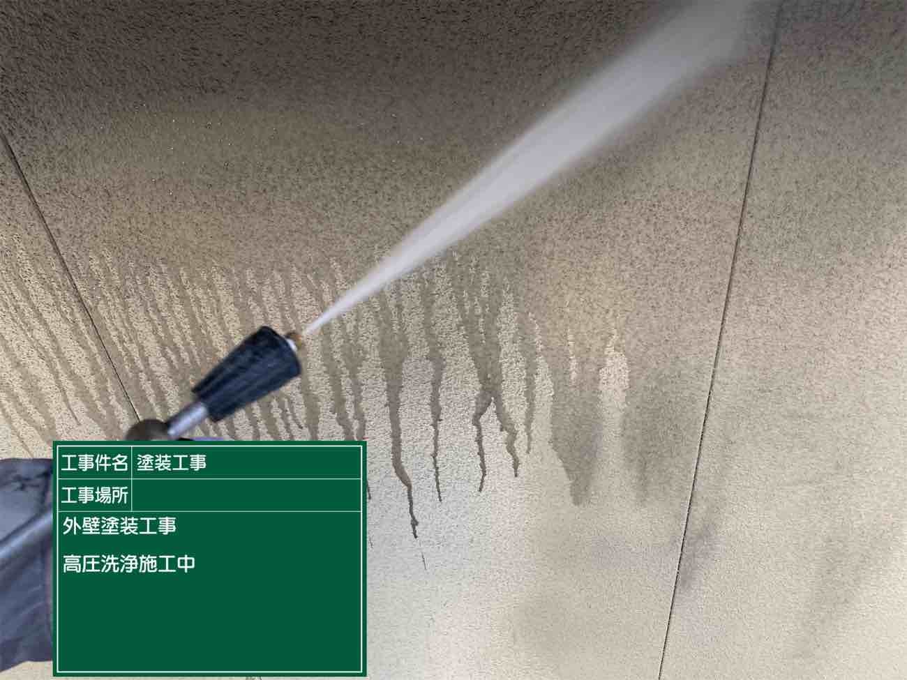 外壁の洗浄作業を行います。外壁の汚れを落としていきます。