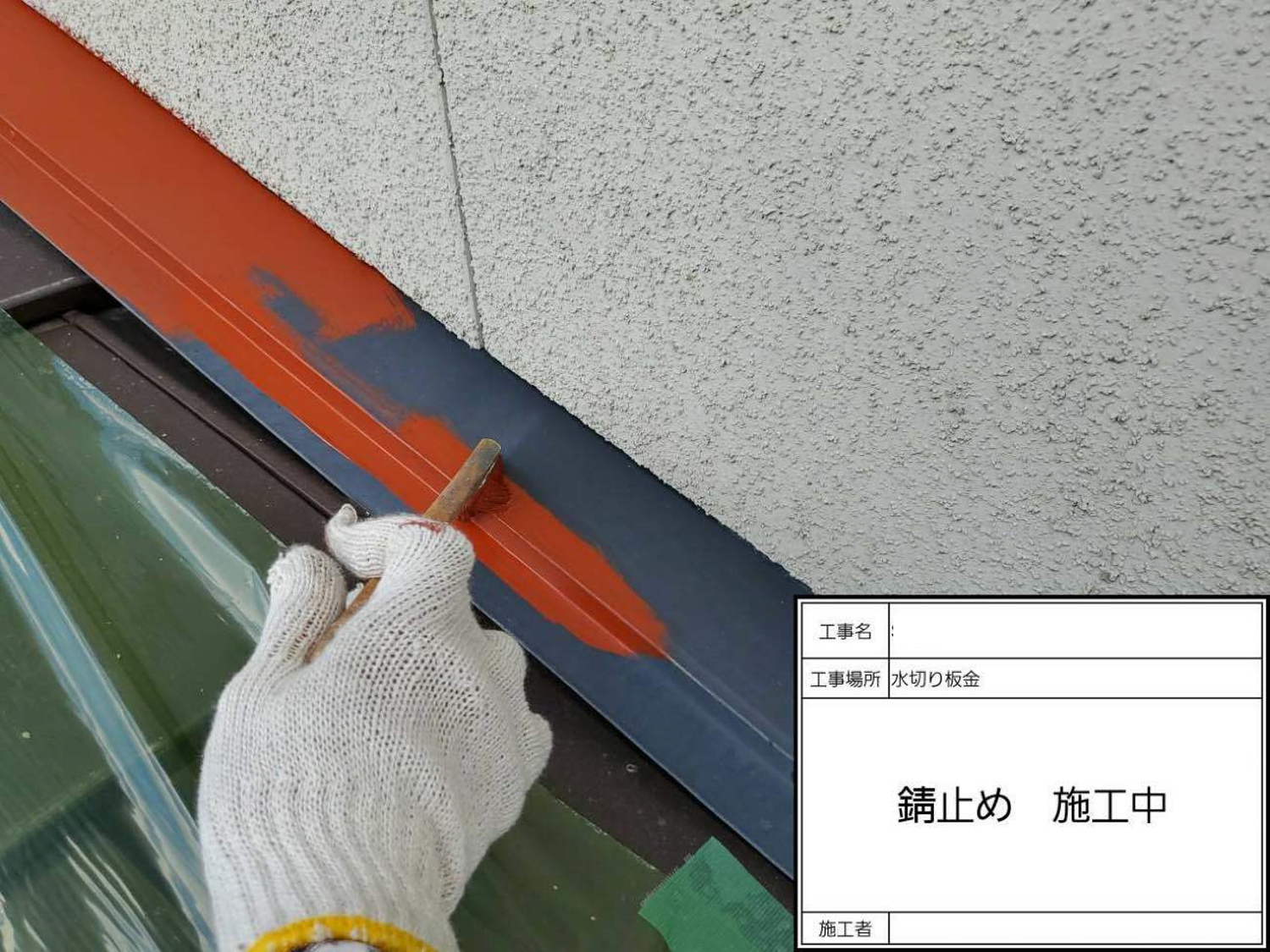 今回お屋根は陶器瓦ということで施工しておりませんが、板金部分の防水性は低下してしまっていたためその部分のみ塗装していきます。