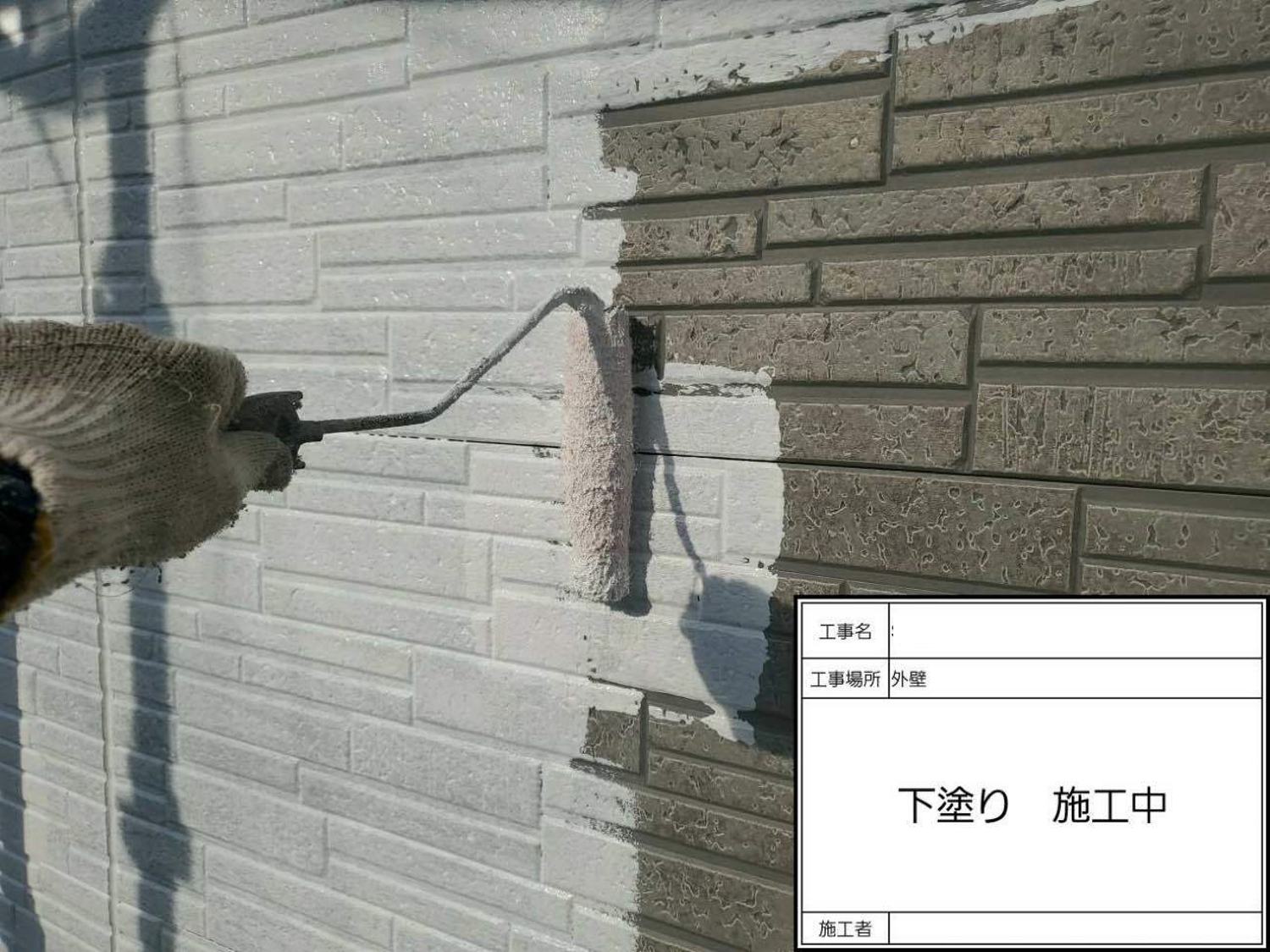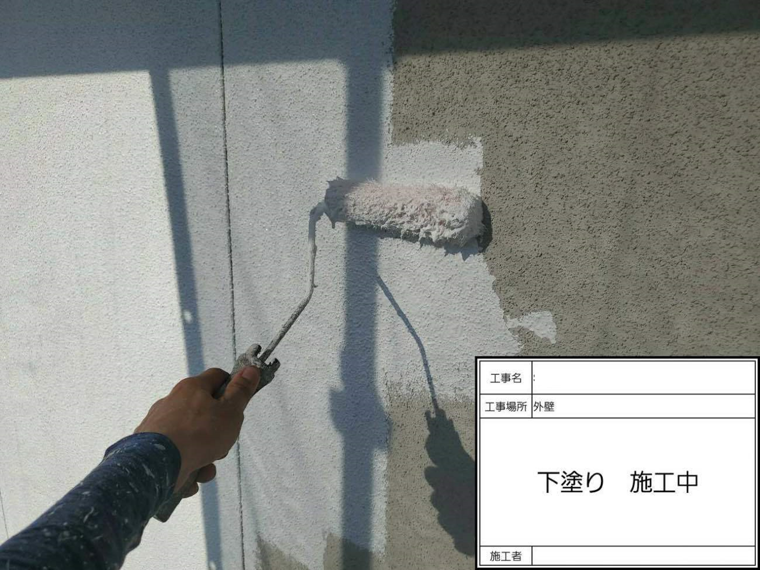 シーリングがある外壁の場合、このように塗装工程に入るとシーリングの施工状況が確認できなくなってしまうため、シーリング工程が完了した時点で一度目視て確認しておかれることをお勧めします。