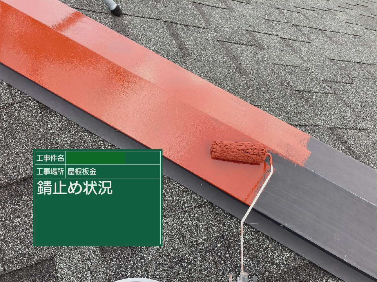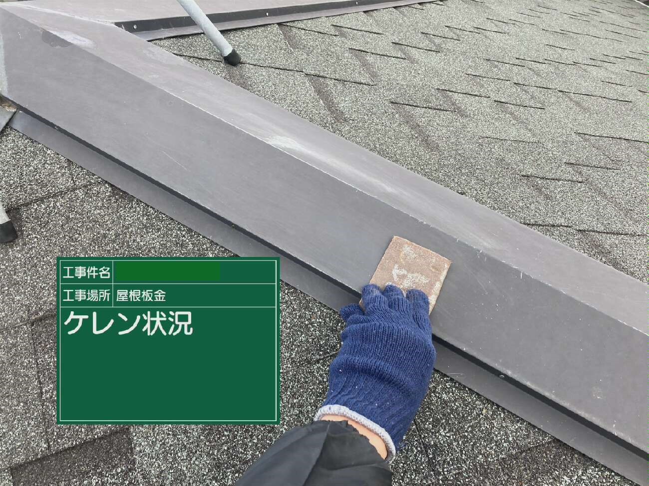 屋根板金の高圧洗浄を行い、細かい汚れをケレンで落としていきます。