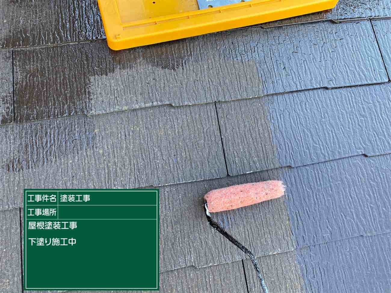屋根の塗装作業です。下塗りから行います。工程に関しては外壁と同じものになります。